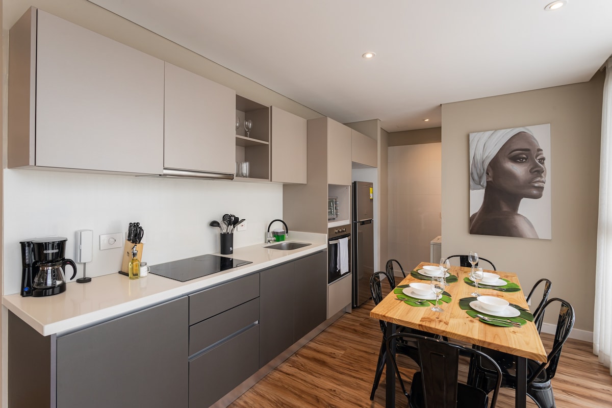Enjoy an amazing experience with style in this brand new comfy luxury loft. Full equipped with double bed, wifi, TV, microwave, waffle maker, freezer, work desk, coffee maker, great natural light and an amazing view. Located in an exclusive city area, very close to public transportation, near some of the best restaurants & malls in the city. The building has laundry room, coworking, a 360 terrace with bbq and exercise alongside a full impressive city view, nice and helpful building personal.
