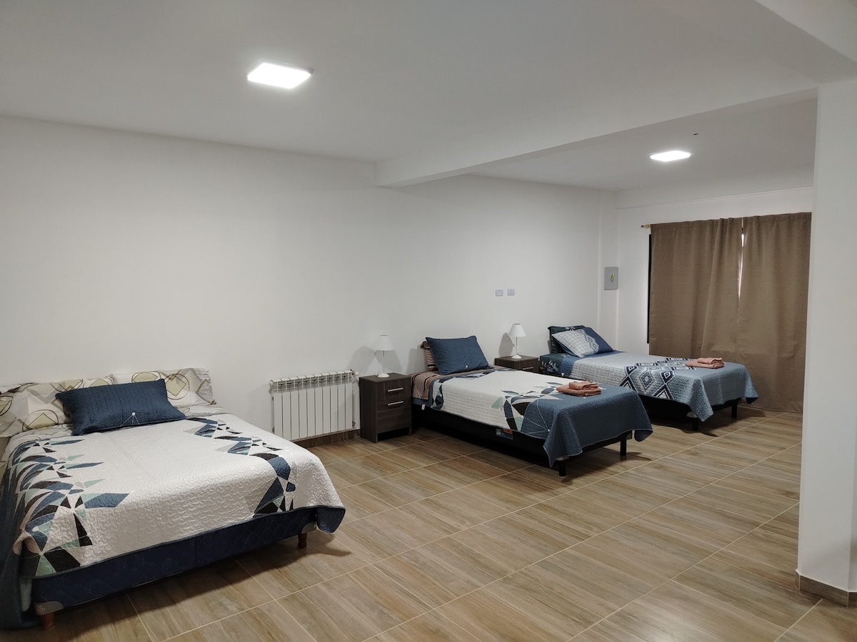 Terletak 200 meter dari Calle San Martín (jalan pusat utama) 400m dari pelabuhan, dan di sekitarnya dengan pasar raya, kedai roti, pengangkutan penumpang, hotel, farmasi, dll. Manfaatkan penginapan dan rasa sangat selesa! Ia mempunyai air panas, pengesan asap, karbon monoksida, ayam belanda elektrik, microwave, dapur gas, pantri yang mencukupi, perkakas pinggan mangkuk penuh, tv, wifi 6 starlink, kamera keselamatan semasa masuk ke bangunan, dan sarapan kering dengan sandwic alu-aluan!