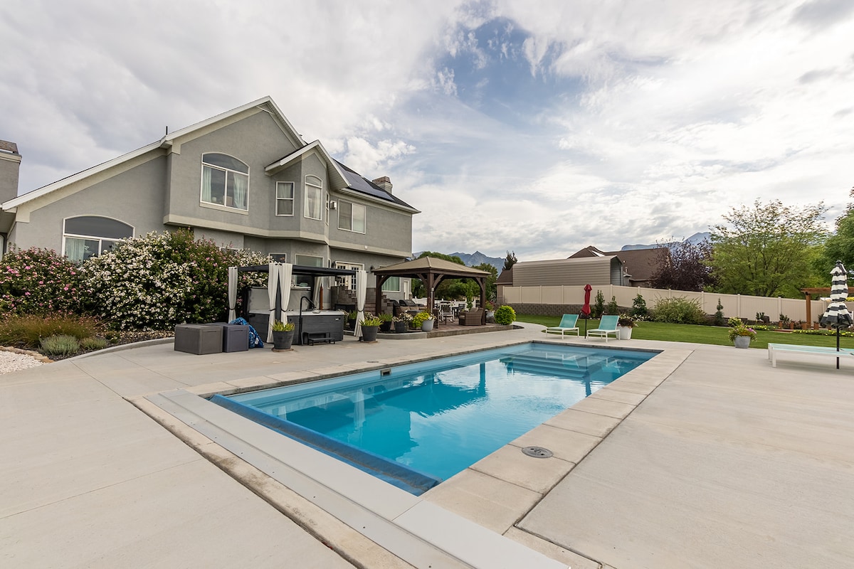 Bersantai di rumah ladang moden kami di cul-de-sac yang tenang dengan pemandangan gunung yang menakjubkan. Rumah ini menggabungkan pesona dan kemewahan Inggeris, menampilkan pendiangan terbuka, dapur gourmet, piano, gelung bola keranjang, buaian rajut, BBQ. Enam bilik tidur: 1 King Size, 3 queen, 1 Penuh, 1 katil berkembar, serta bilik ganti pilihan. Pejabat untuk dua orang. Lounge bawah tanah mempunyai sofa dengan TV Besar dan banyak ruang untuk bersenam. Berhampiran Lapangan Terbang Sundance & Provo. Berdekatan dengan Park City dan Deer Creek. Berdekatan dengan pergunungan.