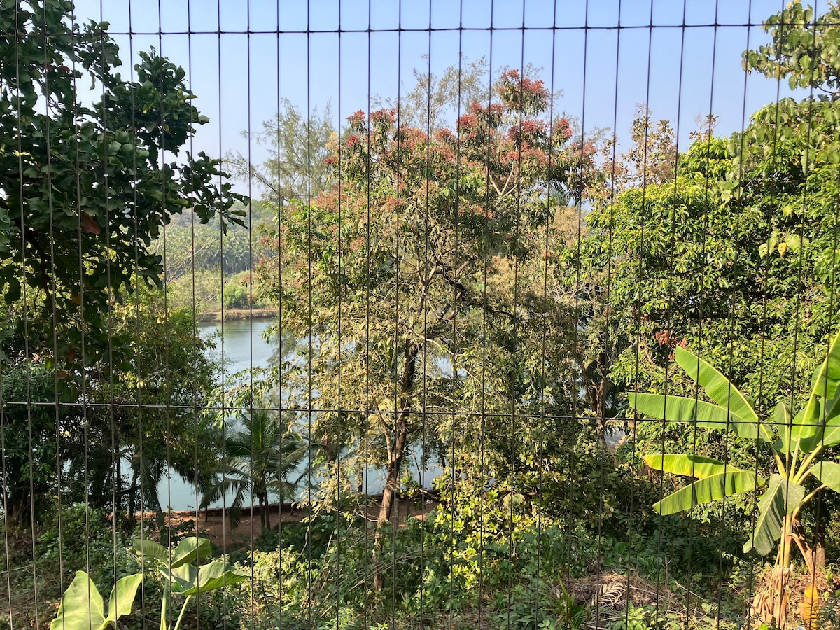 Lupakan kebimbangan anda di ruang yang tenang ini di sebuah kampung yang tenang. Dikelilingi oleh sungai dan pokok kelapa, anda boleh berehat di rumah persendirian dan taman yang luas ini sambil berada dalam jarak berjalan kaki dari pantai goa selatan yang terkenal meriah yang penuh dengan restoran dan kedai tempatan. Pusat untuk meneroka keindahan selatan goa, anda boleh kembali ke ruang peribadi anda untuk berehat daripada hari anda atau berehat sehari menikmati patio dan taman, memerhatikan hidupan liar atau mengadakan BBQ. Terdapat pendingin hawa penuh, WiFi dan bekalan kuasa sandaran