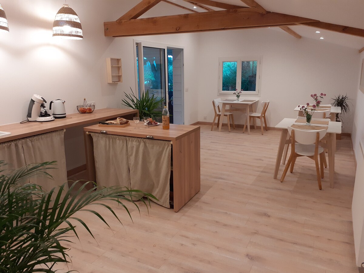 Luas dan cerah, terletak dalam suasana hijau dan tenang, ia adalah tempat yang ideal untuk mengecas semula bateri anda untuk keluarga atau rakan. Dapur yang serba lengkap dan serba lengkap terbuka ke ruang tamu. Penginapan yang hangat dan mesra, sesuai untuk malam aperitif anda, permainan papan atau pawagam! Untuk kerja jarak jauh, pejabat di setiap bilik tidur dengan akses gentian optik. Teres persendirian dengan perabot taman, plancha, dan tab mandi air panas, menghadap taman berhutan dan berbunga.