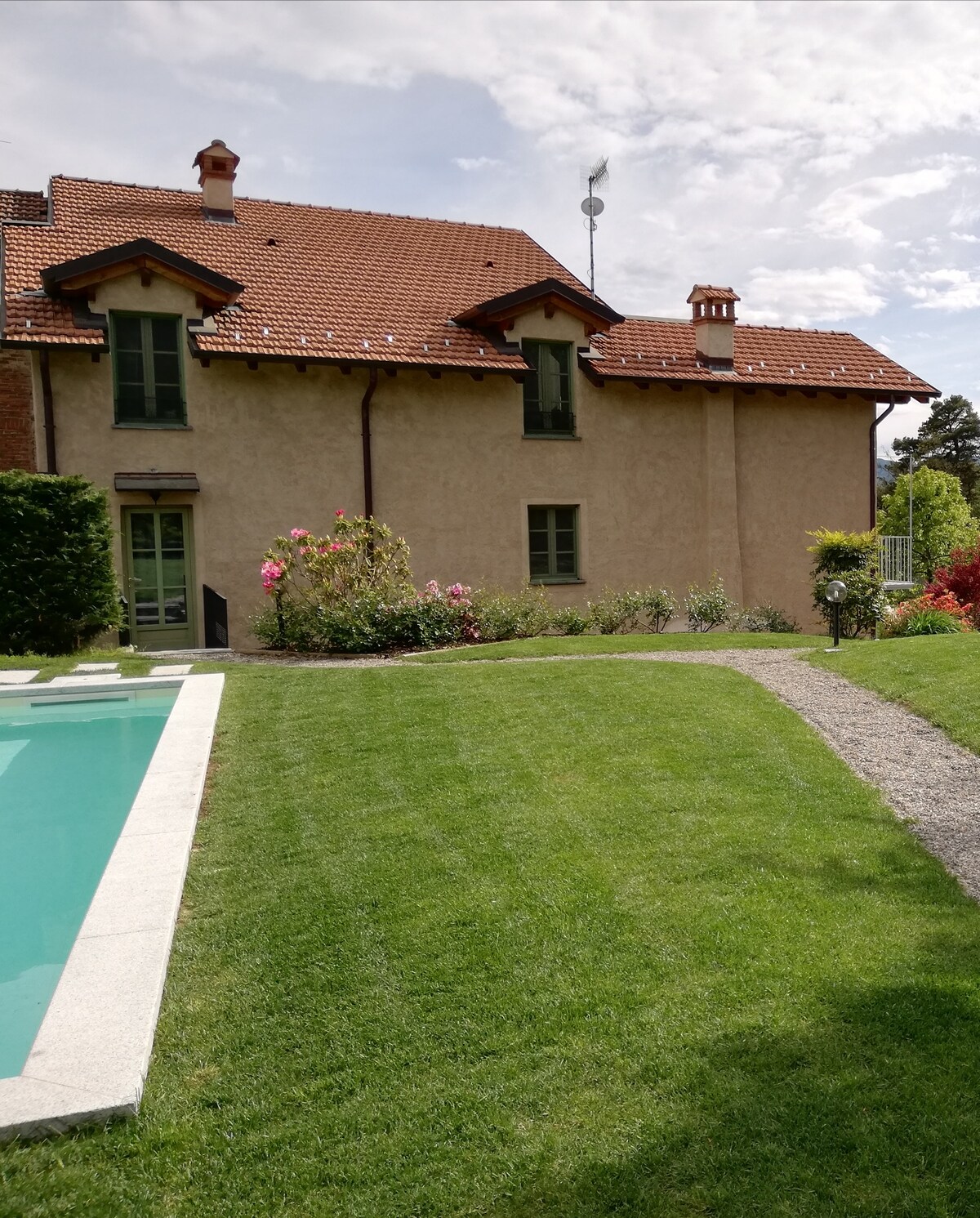 Alloggio in casa liberty, tennis, park con vista incantevole. Due locali,cucina living, servizi . Area esterna per pranzo e cena. Cozy flat with amazing sightseen. WiFi, TV, air conditioning portable, tennis ,ext 5x3 pool (summertime), private parking. All backyard available! spring/summer only for our guests. Pool, tennis, mountain bikes, 2 barbecue, private external area,20. 000 mq/sm garden, cats :-) FULLY SANITATION Home restaurant exclusive for Guests, ON REQUEST