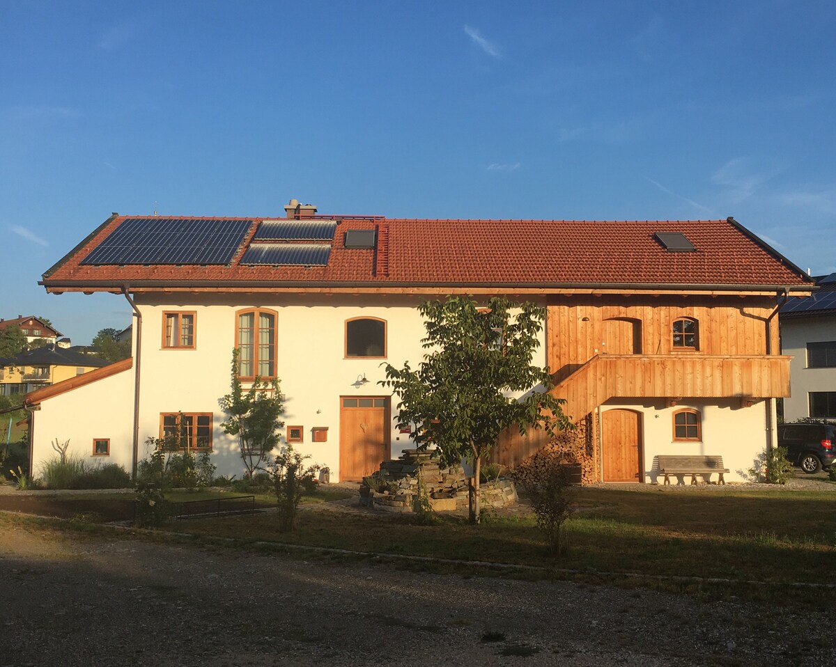 Apartment kami yang sangat cerah, lengang dan tenang terletak di tingkat satu rumah kami dan mempunyai akses terus ke kawasan teres dan taman anda. Apartmen baru ini moden di luar bandar dan sangat baik. Frasdorf terletak di kaki pergunungan Chiemgau, terletak di bukit-bukit Voralpenland. Hanya 8 kilometer dari Tasik Chiemsee dan Simssee. Pusat antara Munich dan Salzburg dan jauh dari kesibukan dan tekanan pada setiap musim.