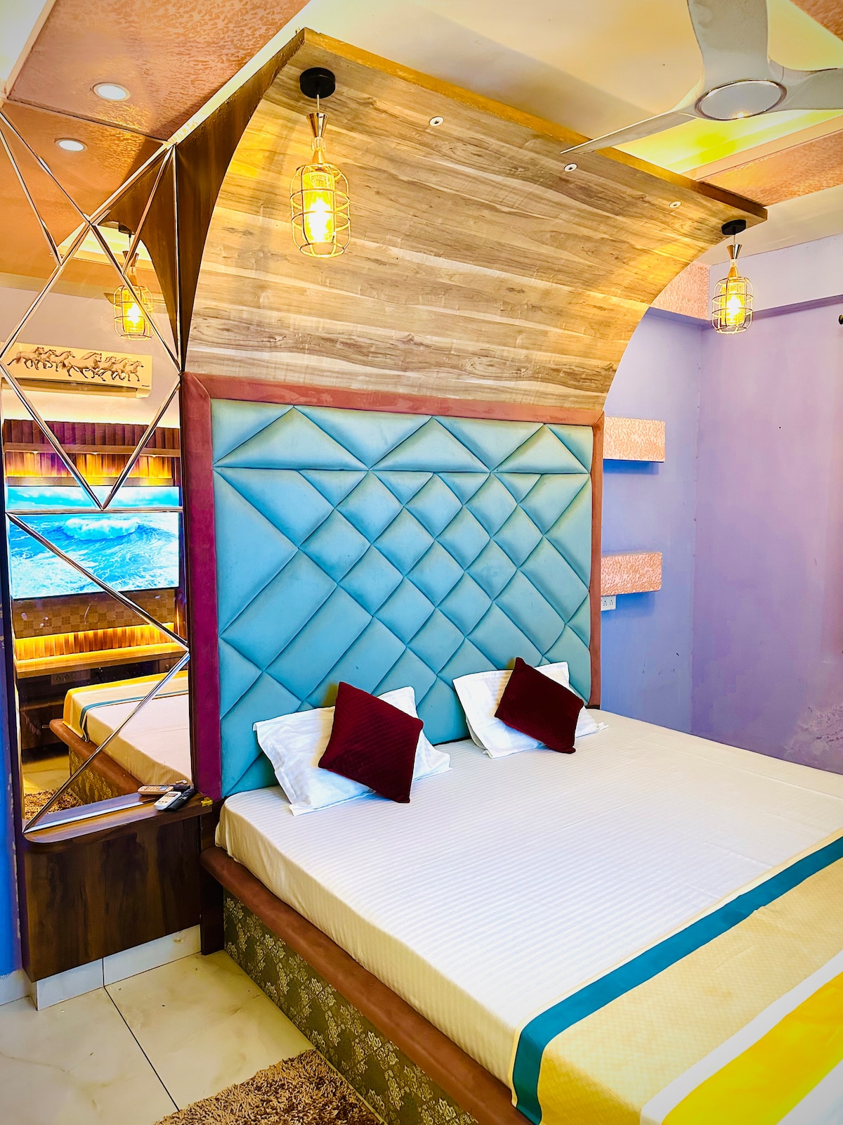 Welcome to Jaipur! Nestled in the most central area of the Pink City, this unique and aesthetic 1BR studio apartment with Juliet Balcony is artistically designed to make sure you enjoy the most luxurious stay along with all the amenities. Just 1km from main Jaipur railway station, it is the perfect spot from where you can easily explore Jaipur like a local. From here, the Walled city is just a few minutes ride from tuk tuk so you can get to all the most popular attractions of Jaipur city easily