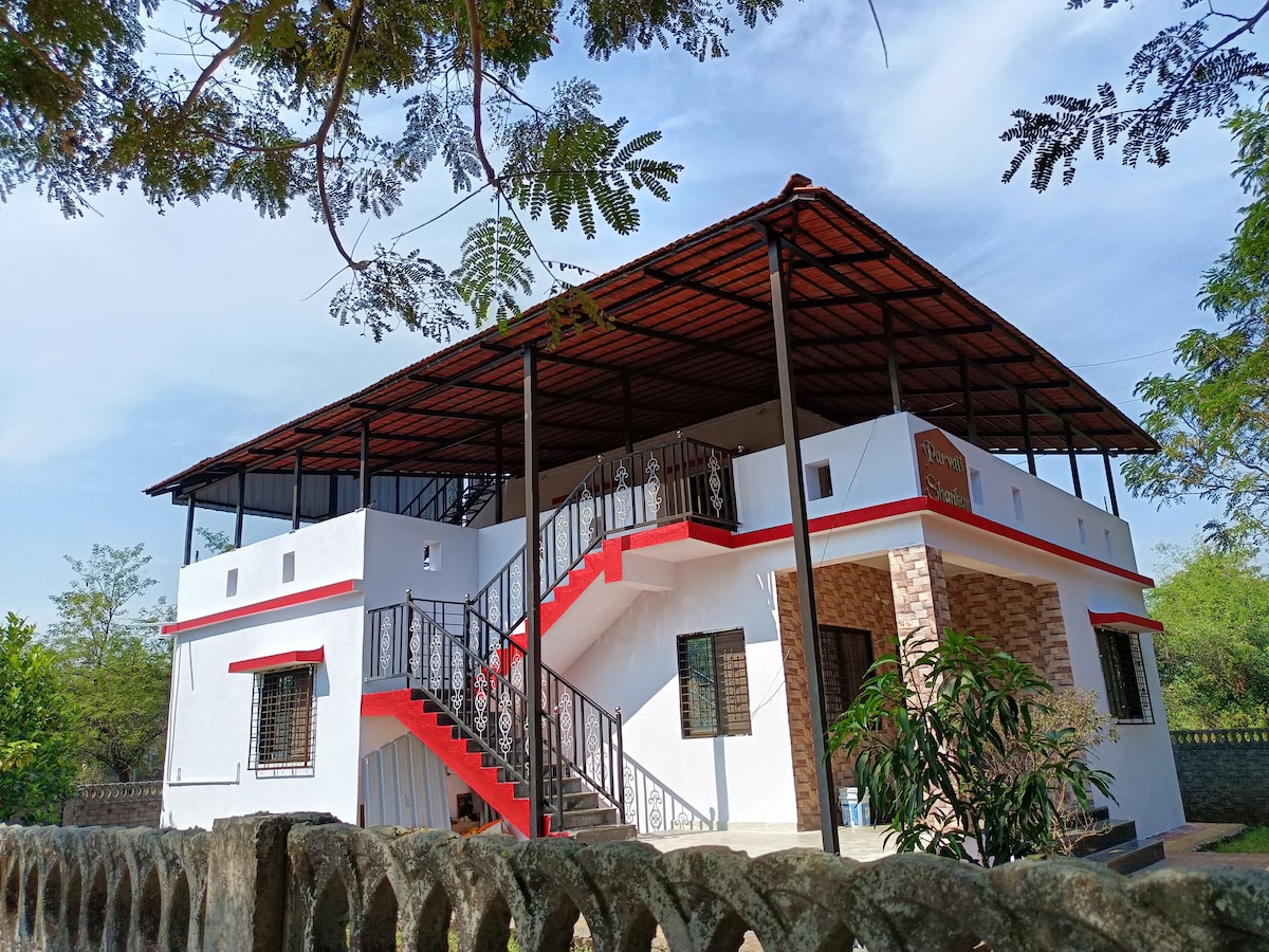 Selamat datang ke vila Karnik HomeStays 3-BHK yang terletak di kaki bukit kubu Kohoj, percutian yang tenang dan ideal yang terletak tidak jauh dari Mumbai. Vila yang luas ini menawarkan gabungan kehidupan yang selesa dan persekitaran yang tenang, menjanjikan penginapan yang menyeronokkan untuk keluarga atau kumpulan. Halaman hijau yang subur & teres menawarkan pemandangan menakjubkan yang membawa anda ke dunia yang berbeza. Vila ini berada dalam komuniti yang selamat dan berpagar, memberikan rasa aman dan damai untuk anda dan keluarga.