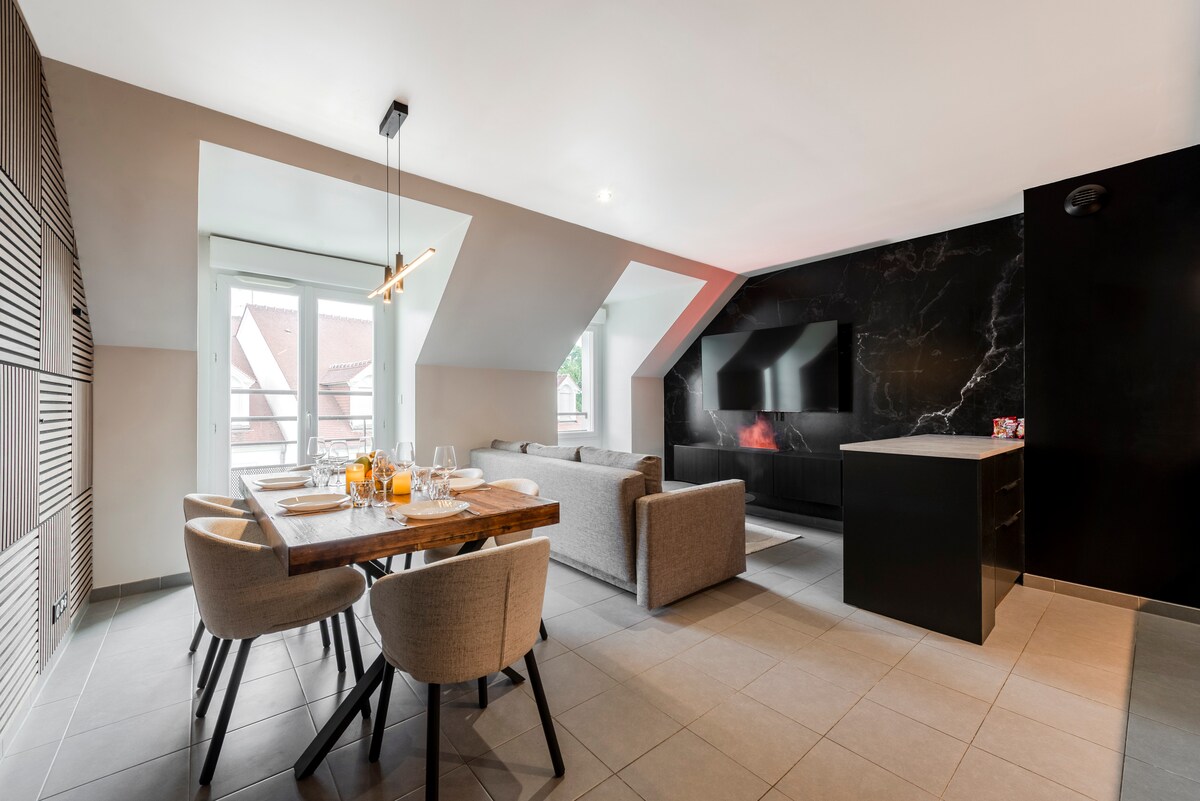 Obsidian Luxury Suite - suite mewah unik, khusus untuk berehat, sesuai untuk pasangan, keluarga atau kumpulan rakan. Sehingga 6 orang: 2x Queen + katil sofa. Balneo untuk berehat, cermin di atas katil, TV 4K 65", Wi-Fi berkelajuan tinggi, Netflix/Disney+, dapur lengkap, tempat letak kereta persendirian yang selamat. Tambahan: Pintu masuk romantik, snek dan minuman. 10 minit dari Disney, 15 minit Val d 'Europe, 45 minit Paris. Kediaman yang tenang, elegan dan selesa, serba boleh untuk penginapan yang tidak dapat dilupakan. Dekat dan mudah.