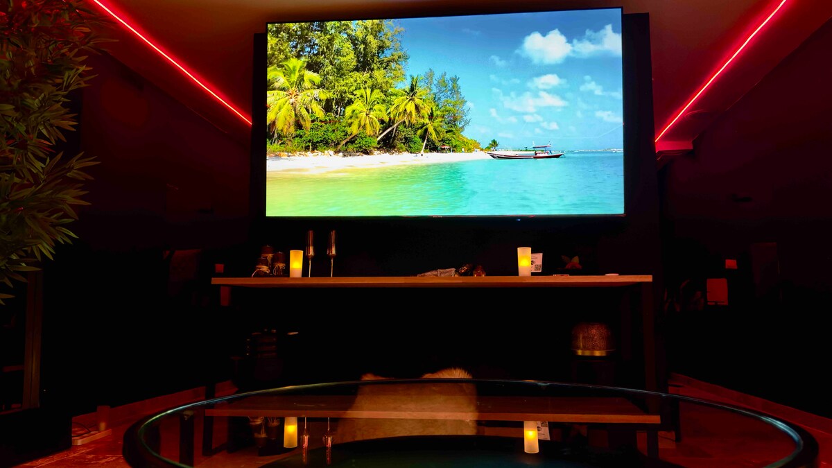 Selamat Datang Syurga Mewah. Terokai ruang bawah tanah unik yang dihoskan oleh Buddha dalam hutan yang eksotik. Selami dunia yang dikhususkan untuk keseronokan dengan sauna, dan tab mandi air panas yang menakjubkan di sebelah TV besar untuk pengalaman yang tidak dapat dilupakan. Katil king, pawagam jenis skrin 4K, cermin dan lampu melengkapkan oasis ini. Lepaskan imaginasi anda dengan ayunan di tepi katil. Tambah ke meja urut, minyak dan kemenyan anda untuk pengalaman deria yang lengkap.