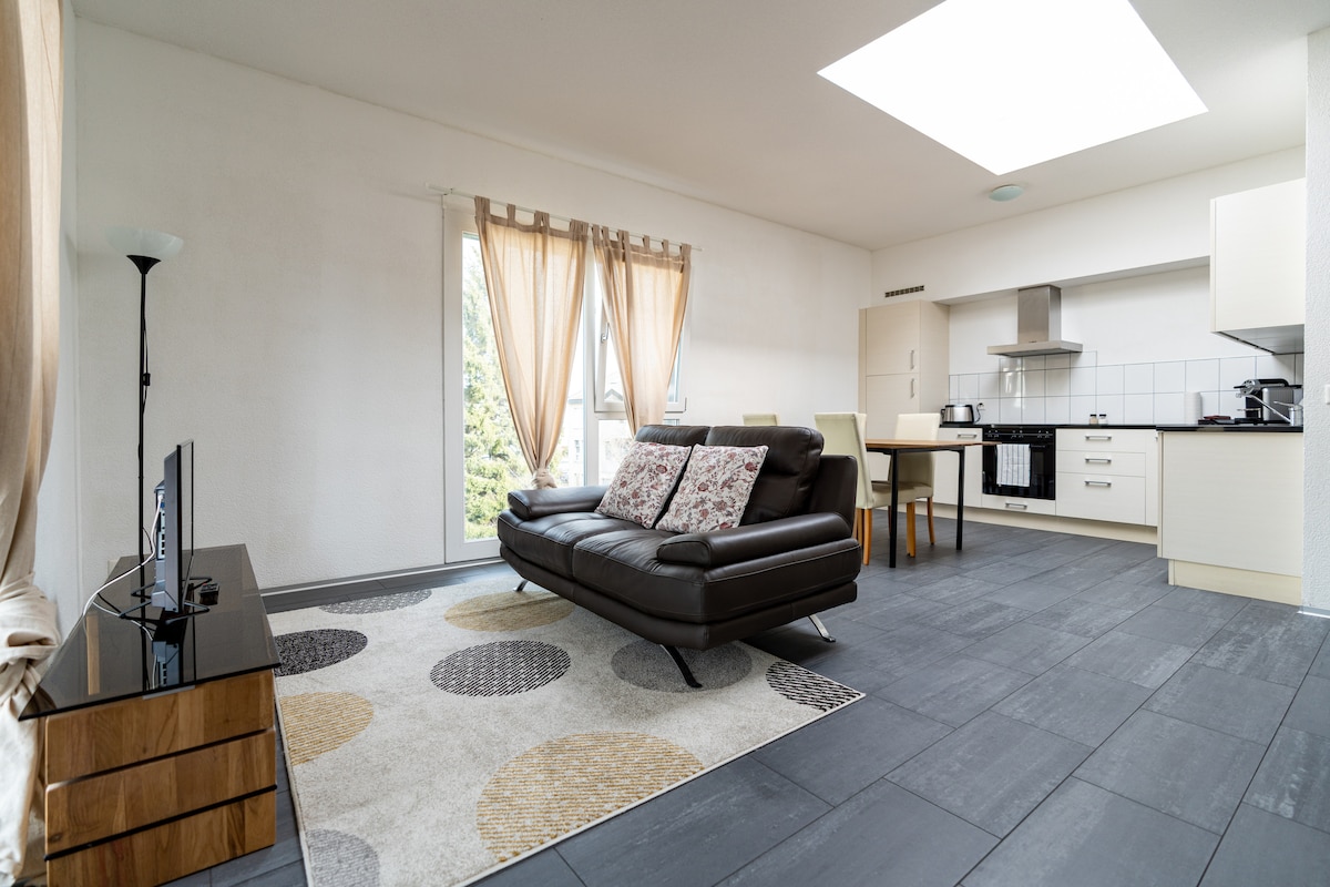 Penginapan yang luas dan cerah ini mengandungi bilik tidur dengan katil double, bilik mandi dan tandas berasingan, dapur terbuka ke ruang tamu. Ia berjarak 3 menit dari stesen kereta api dan juga pusat bandar dan 7 minit dari meja penyambut tetamu kami. Kami gembira untuk menemani anda semasa daftar masuk ke apartmen untuk membawa anda berjalan-jalan. Anda boleh menikmati banyak diskaun dan maklumat untuk aktiviti di Gruyère.