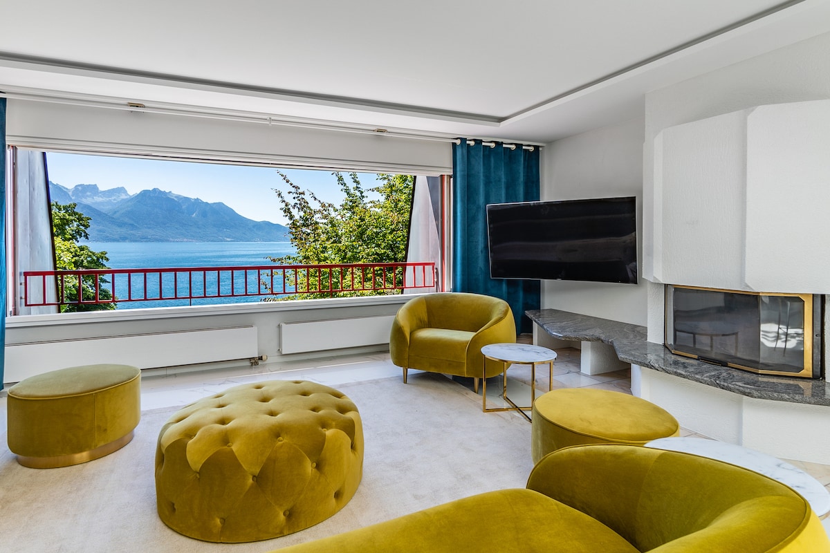 Studio dengan pemandangan tasik & gunung yang menakjubkan ini terletak di barisan hadapan Tasik Geneve, dalam masa 10 minit dari pusat Montreux. Di tingkat bawah bangunan anda akan menemui restoran Le Contretemps. Terdapat 2 meja pingpong di halaman dan kelab tenis berhampiran. Kanak-kanak anda akan menikmati taman permainan yang besar di hadapan bangunan. Kami boleh mendapatkan anda raket untuk badminton atau tenis meja atas permintaan. Tiada tempat letak kenderaan persendirian. Tiada haiwan peliharaan dibenarkan.