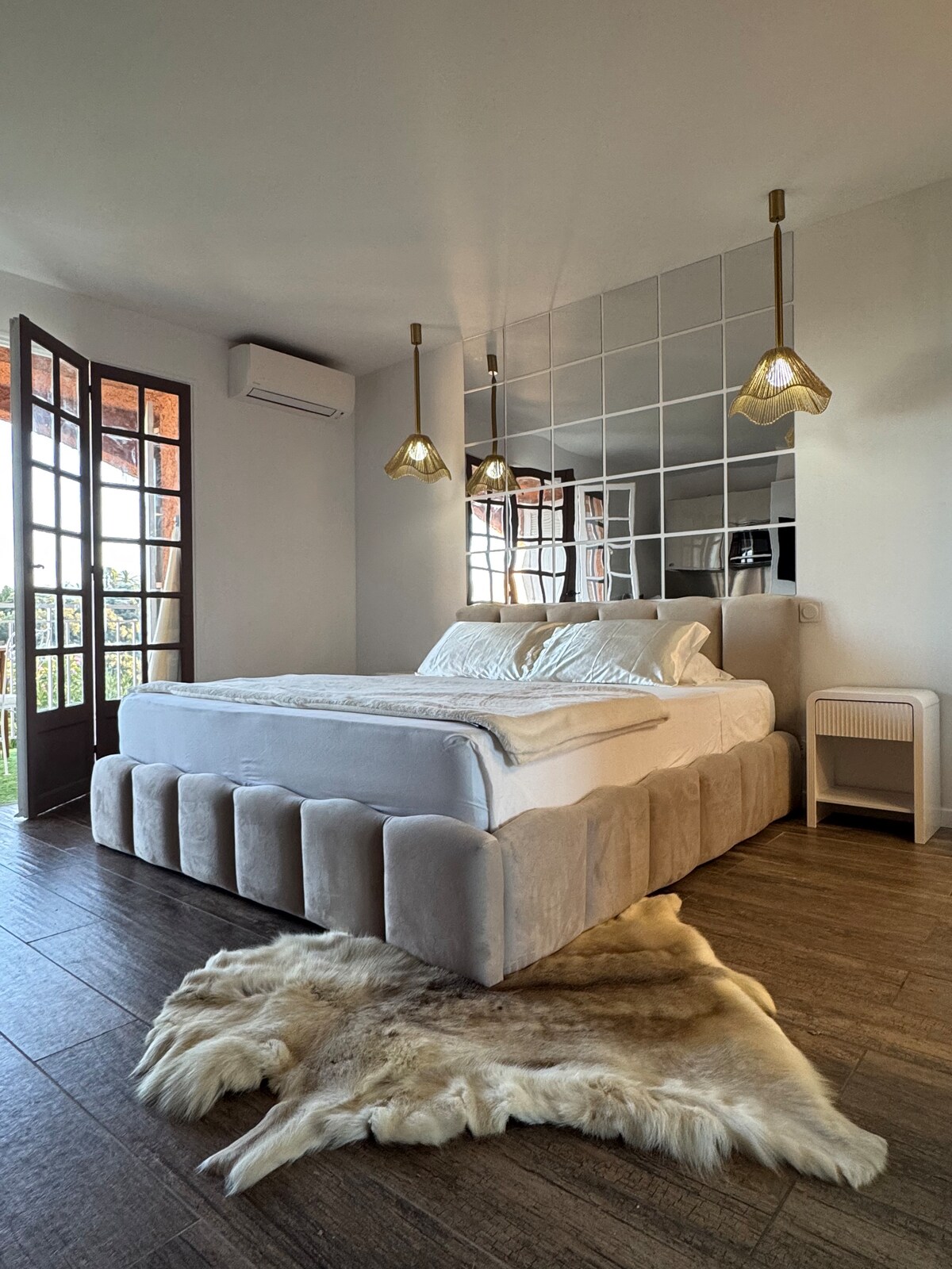 Apartmen yang indah seluas 63m2 (3 bilik) berhawa dingin di kediaman mewah baru dengan kolam renang infiniti di atas bumbung yang menghadap ke laut. Terdapat teres 14m2 dengan pemandangan laut. Kediaman ini membolehkan akses terus ke pantai dan terletak di pusat kawasan tepi laut Villeneuve-Loubet Cadar, tuala, tuala kolam renang, syampu, sabun, tuala teh, dan tempat letak kereta persendirian tersedia di kediaman. Semuanya boleh dilakukan dengan berjalan kaki.