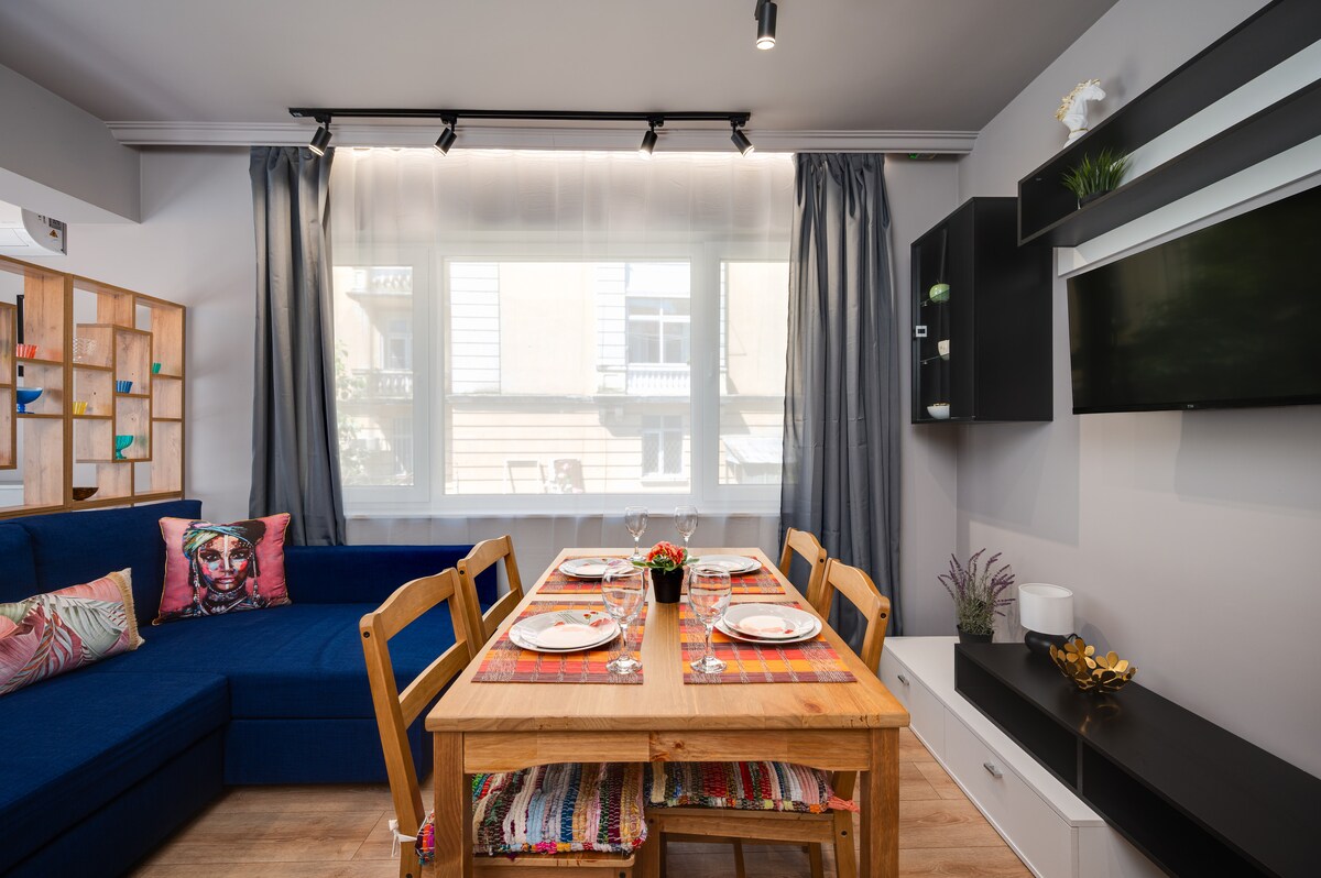 Apartmen selesa untuk 2 orang, terletak berhampiran dengan pusat bandar dan pantai Varna. Di bangunan yang sangat cantik di tingkat 1 dengan lif, Internet berkelajuan tinggi. DAFTAR MASUK SENDIRI/waktu fleksibel/ DAFTAR KELUAR SENDIRI/sehingga 13:00/ Internet: wifi berkelajuan tinggi atau Lan Tempat letak kereta: berbayar di tepi jalan berhampiran & percuma dalam masa 7 minit /berjalan kaki/