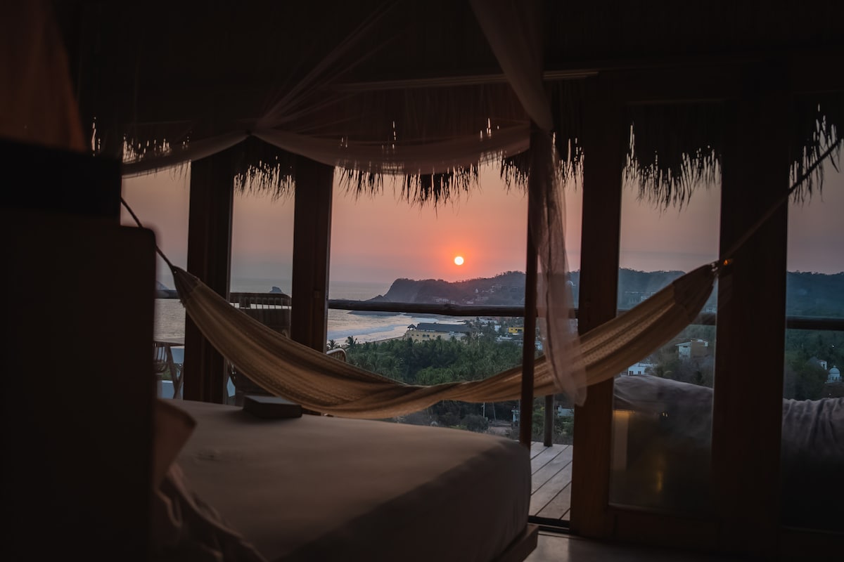 Sesuai untuk pekerja jarak jauh. Starlink & internet gentian optik. 1-mn berjalan kaki ke pantai, eko-bungalow dengan dapur serba lengkap, bilik mandi, mezanin untuk meditasi. Air minuman yang disaring sepenuhnya, ditapis, selamat. Bebas asap rokok. Pasar organik di Mazunte. Berjalan-jalan di pantai, sewa moped, snorkel di pantai kecil. 6 menit berjalan kaki ke Hridaya. Anda mempunyai jejak karbon ringan di penginapan kami. Ekoloji & lestari, kami mengitar semula. Haiwan peliharaan tidak dibenarkan, tiada pendingin hawa. **Sewaan bulanan**