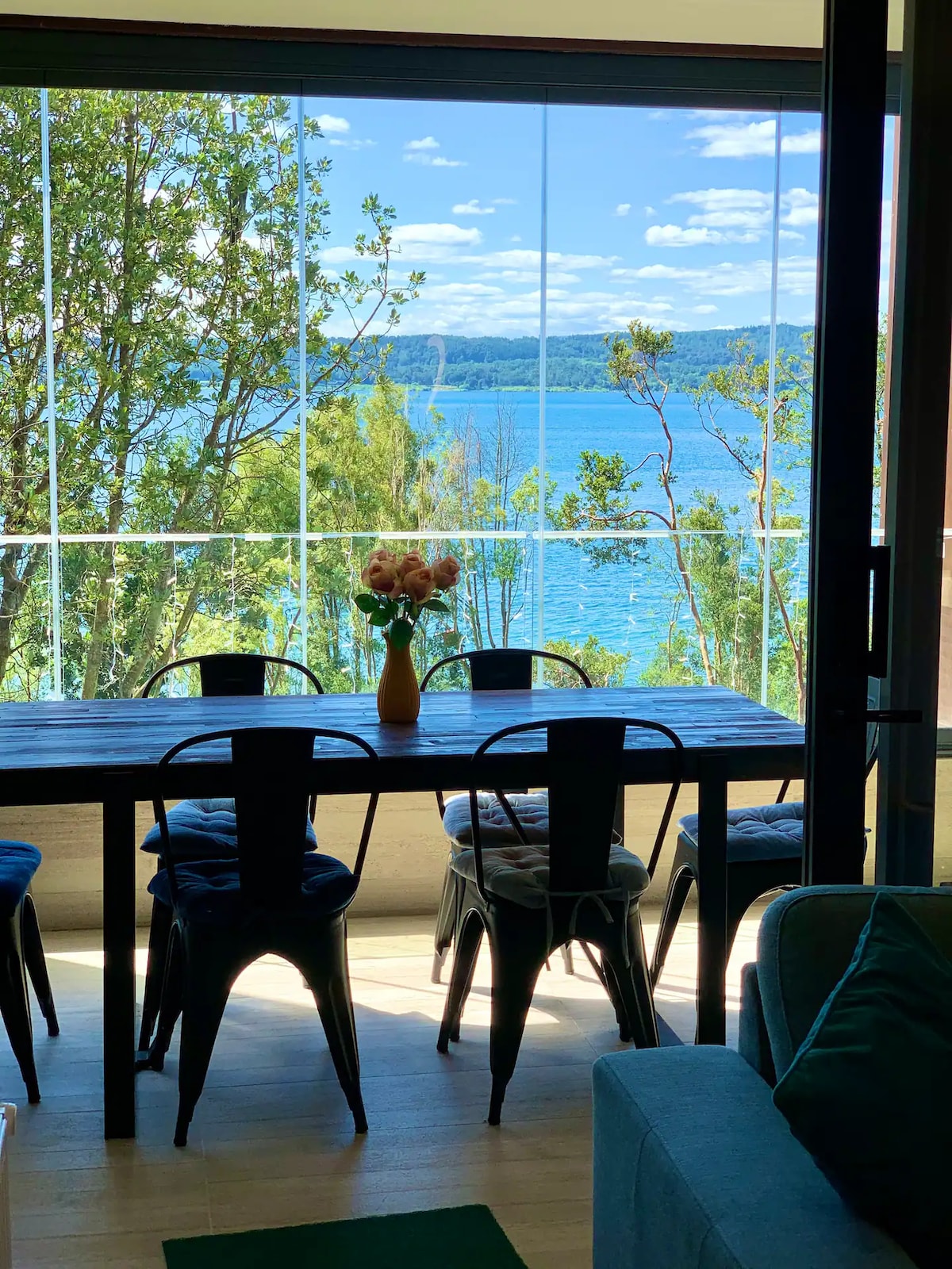 Apartmen eksklusif di Condominio La Puntilla, di barisan pertama Tasik Villarrica. Nikmati teres persendirian dengan BBQ dan ruang tamu luar dengan pemandangan langsung tasik, dan poskad gunung berapi dari pintu masuk. Ia mempunyai 3 bilik tidur, 2 bilik mandi, ruang tamu dan ruang makan dan dapur lengkap, dengan mesin pencuci pinggan dan mesin basuh. Mempunyai Wi-Fi yang pantas. Akses gimnasium, kawasan hijau dan keselamatan dalam suasana mewah. Sesuai untuk keluarga atau kumpulan yang mencari keselesaan, alam semula jadi dan eksklusif.
