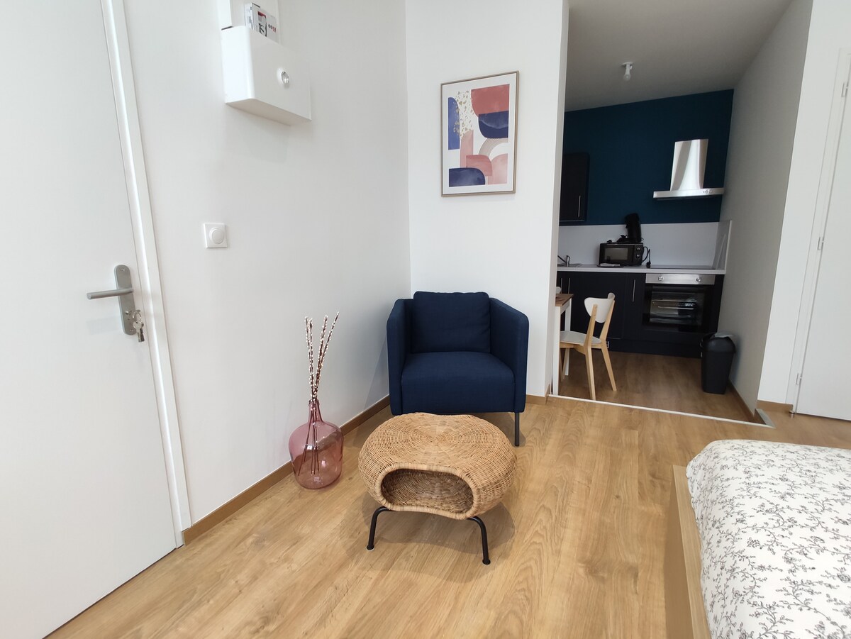 🏡 Studio 22 m² yang selesa dengan teres persendirian & taman 🌿—sukar dicari di bandar ini! Nikmati saat-saat yang cerah ☀️☕ 🛏️ Katil kelamin + 2 katil sofa 🍽️ Dapur yang serba lengkap (ketuhar, ketuhar gelombang mikro) Wi-Fi 📶 berkelajuan tinggi Simpanan basikal🚲 selamat 🚋 Trem hanya 2 minit perjalanan untuk sampai ke pusat bandar dan stesen kereta api 🚉 Ruang yang tenang, berfungsi dan dioptimumkan—sesuai untuk penginapan anda di Valenciennes!