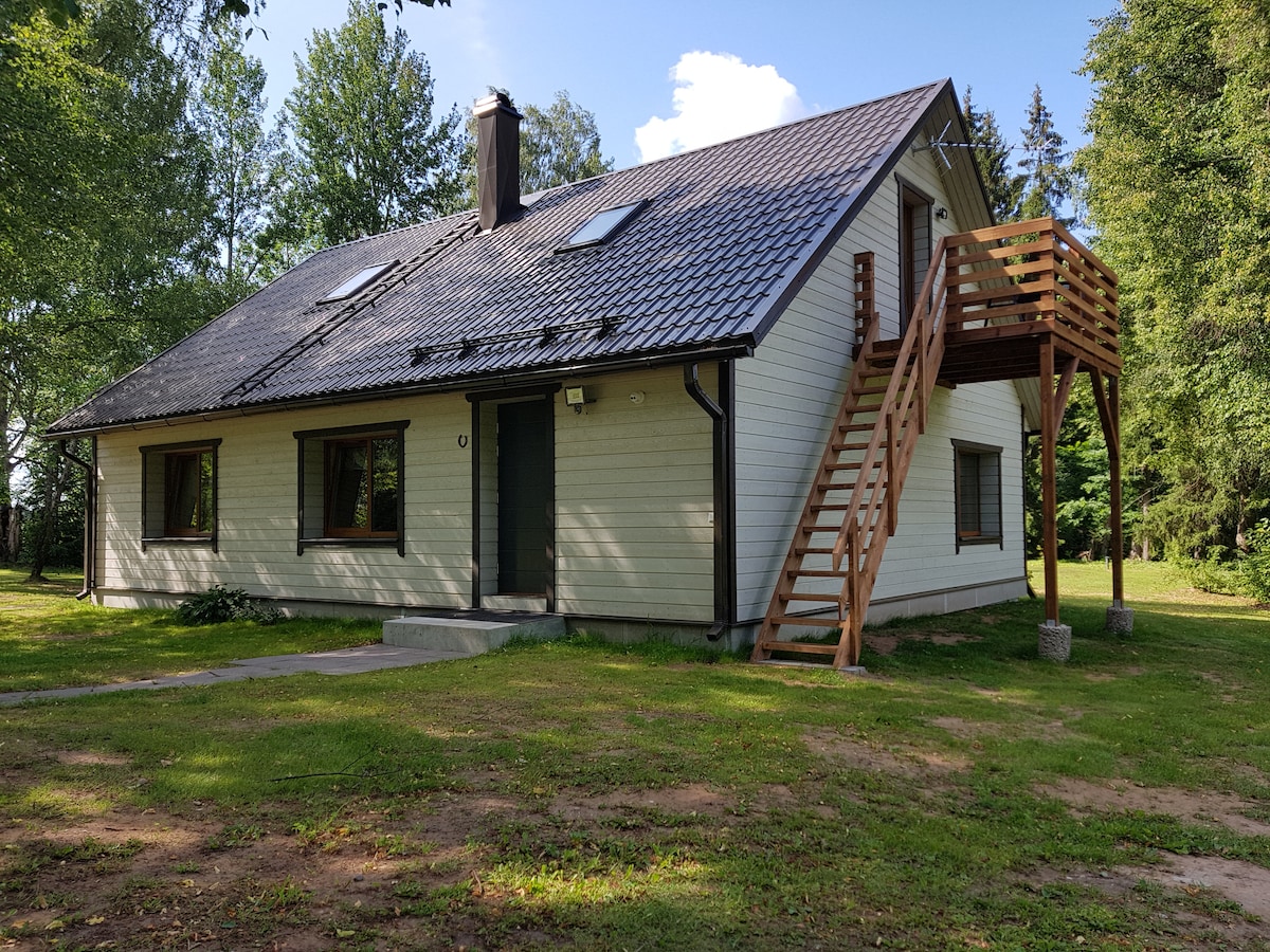 This a cozy wooden house located on the edge of nature reserve in South Estonia. Amazing forests all around! The house has been renovated by ourselves, has a terrace, private garden area and a sauna. Bedroom is in the attic and downstairs a fully equipped kitchen, livingroom with fireplace, TV and a sofabed. Also a modern sauna, shower room and toilet. This property and the garden area surrounding the house is for your private use. There is another house on the property that we sometimes use.