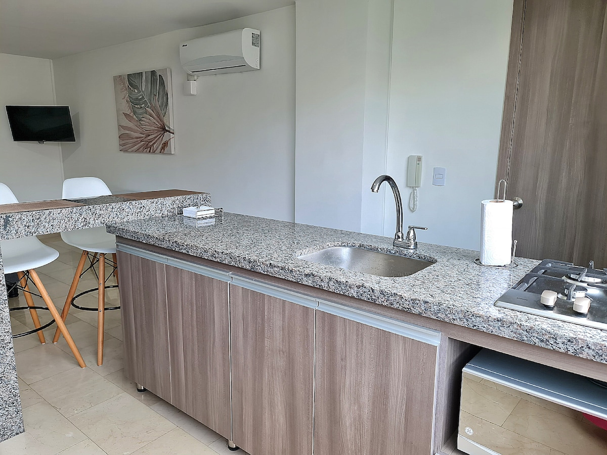 Apartasol yang sensasi dan elegan dikelilingi oleh alam semula jadi; serba lengkap untuk penginapan yang menyenangkan. Anda akan menikmati tempat baru yang sempurna dengan reka bentuk yang segar dan mesra; pengawasan 24 jam. 5 minit dari Lapangan Terbang dan 20 minit dari Café Park. Kemudahan resort: 3 kolam renang, slaid, permainan kanak-kanak, jakuzi, BBQ, mesin basuh. Terletak strategik untuk mengetahui semua paksi kopi dan bandar seperti (Pereira 1h30m dan Cali 2h30m).