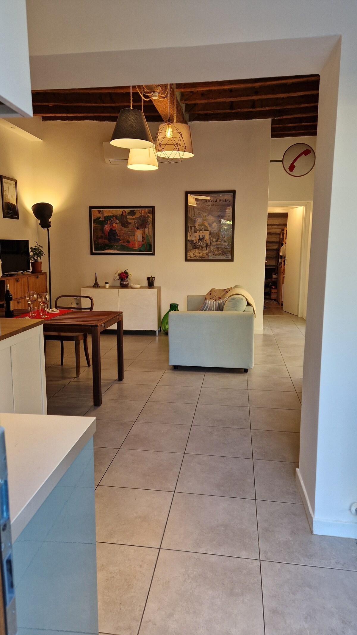Apartmen dua bilik di kampung, bandar lama Pontassieve, di tingkat 2 bangunan kecil tanpa lif, 10 minit berjalan kaki dari stesen kereta api dan bas dengan perjalanan yang kerap ke Florence (23 minit), Mugello, Consuma, Vallombrosa dan Outlet The Mall yang mewah. Ia terdiri daripada 1 bilik tidur dengan katil berbaring tunggal, TV, almari besar dan 2 tingkap yang menghadap sungai dan jambatan Medici, 1 ruang tamu dapur dengan TV google cast, sofa boleh ditukar menjadi katil bujang dan 1 bilik mandi dengan pancuran mandi.