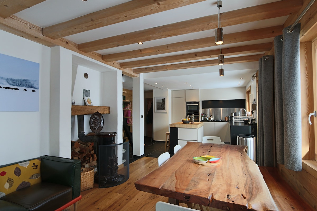Kami gembira menjadi hos anda di rumah kecil/gudang batu lama kami yang comel telah diubahsuai sepenuhnya dan diubahsuai dengan teliti pada pertengahan tahun 2021. Teres selatan yang indah teduh pada sebelah petang, pemandangan yang benar-benar indah dan tidak terhalang ke arah Mont Blanc, jarum Chamonix, "di kaki" glasier Bossons bertentangan. Set 20 m dari jalan di kawasan perumahan. Pengangkutan 2 langkah. 2 ruang letak kereta di hadapan rumah. Wifi. Tiada TV.