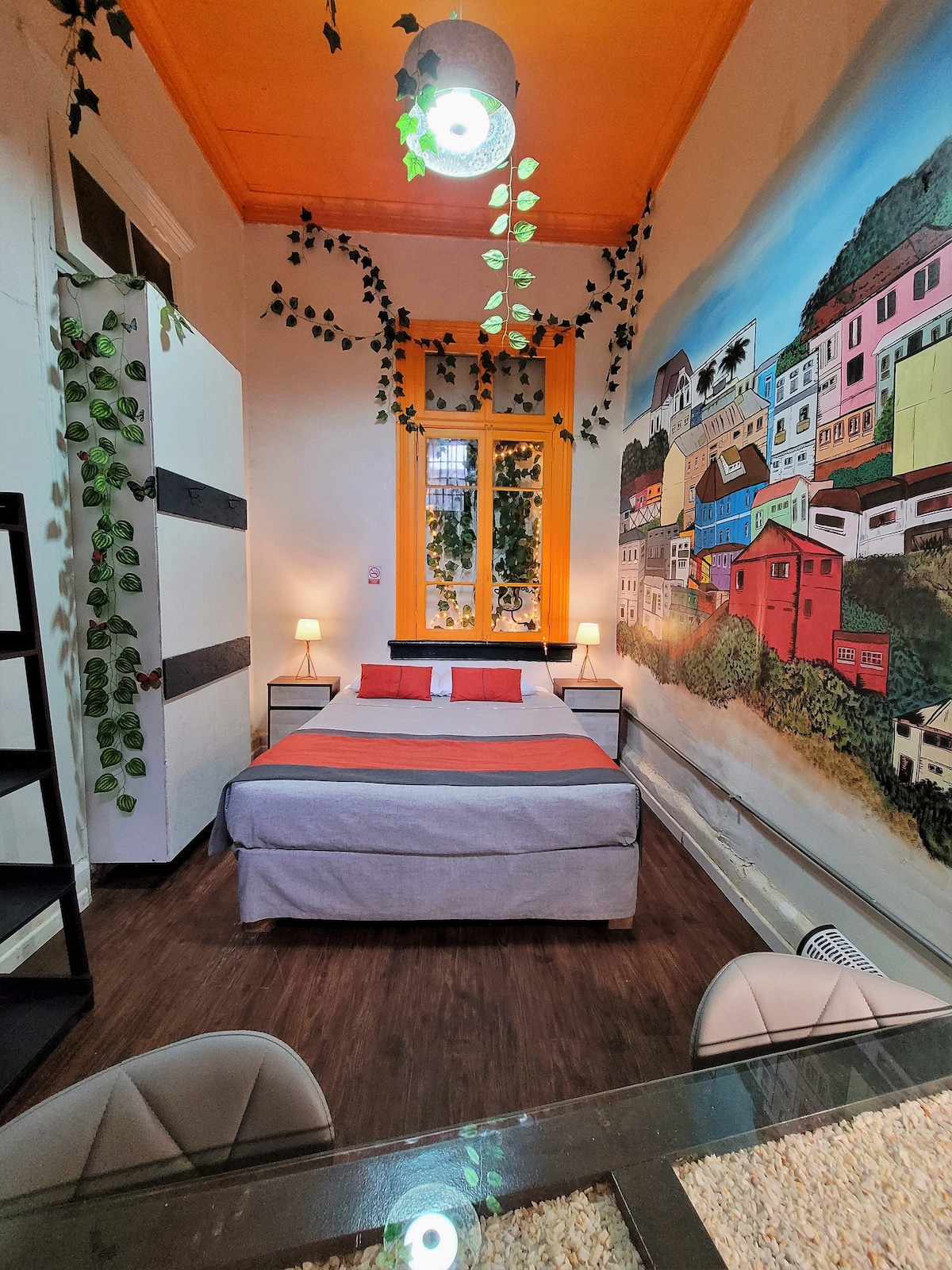 Casa de 1910, rustica y sofisticada, clásica de la comuna, construcción en Roble, segura. A pasos del paseo 21 de Mayo, considerado unos de los mejores miradores de Valparaíso. Somos polos de contactos y datos culturales de la zona. Dos futones, un sofá de de plaza. Diseñada para viajeros de paso que necesiten pasar la noche a módico precio. Ropero locker con llaves. Tienen acceso los huéspedes de la habitación del lado con fin de transitar hacia otras zonas del hostal.