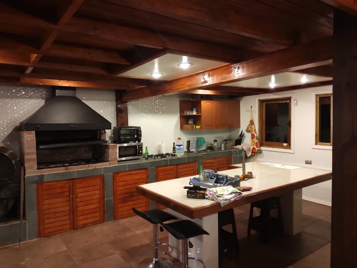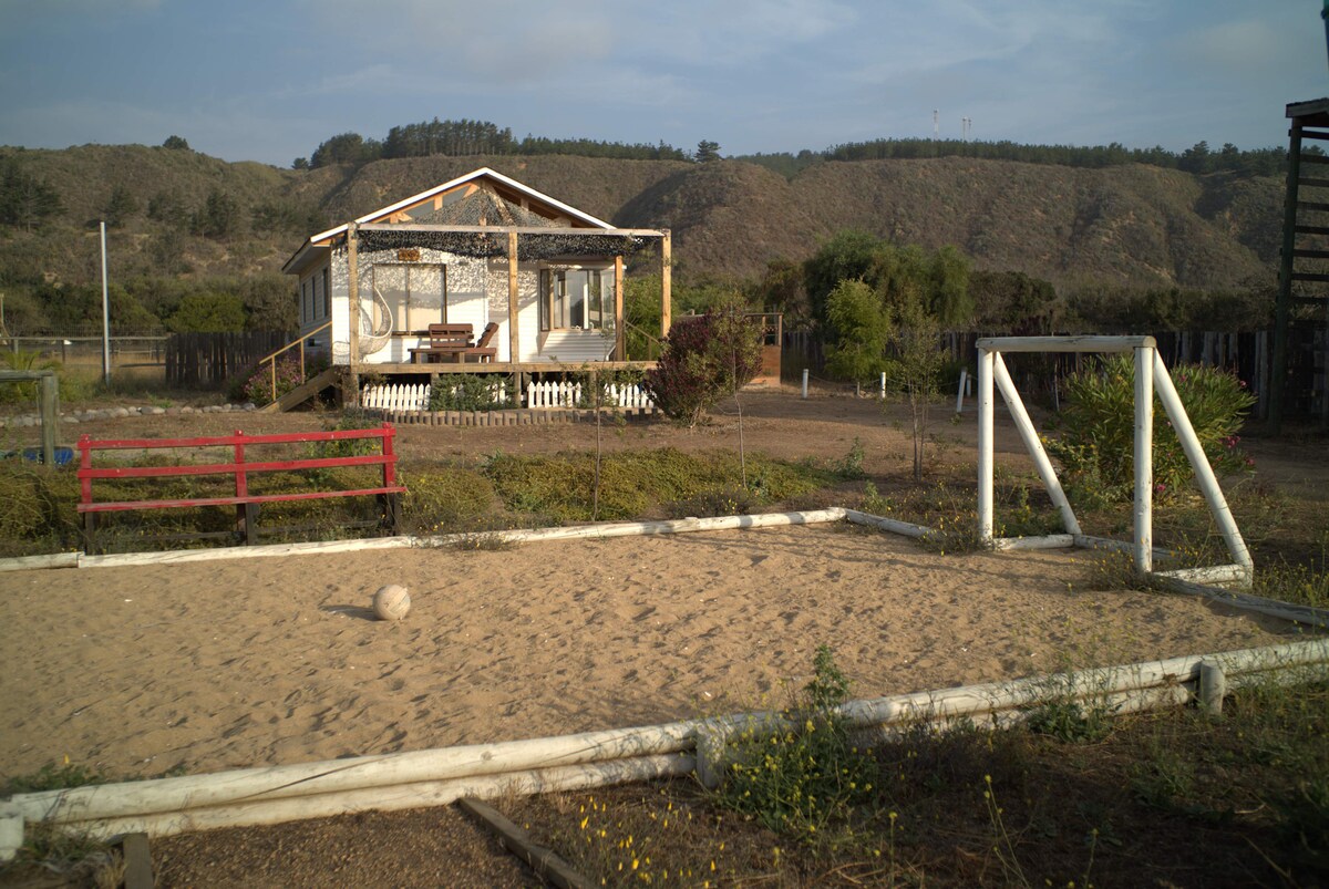Kotej keluarga yang indah, nikmati kawasan desa dan laut, berinteraksi dengan haiwan dalam lawatan berpandu dan nikmati pengalaman unik, 20 minit dari pantai dan dengan tempat perlindungan mudah alih yang boleh membawa anda dalam masa 5 minit percuma. Kabin ini mempunyai 1 bilik tidur kelamin dan 2 bilik tidur dengan kabin yang selesa, untuk 6 orang, dapur, ruang makan, kawasan quincho dan tab mandi air panas tunggal, yang terakhir mempunyai kos tambahan (nilai yang perlu dibayar terlebih dahulu setiap kali anda ingin menghidupkan), gelanggang pasir dan kolam renang.