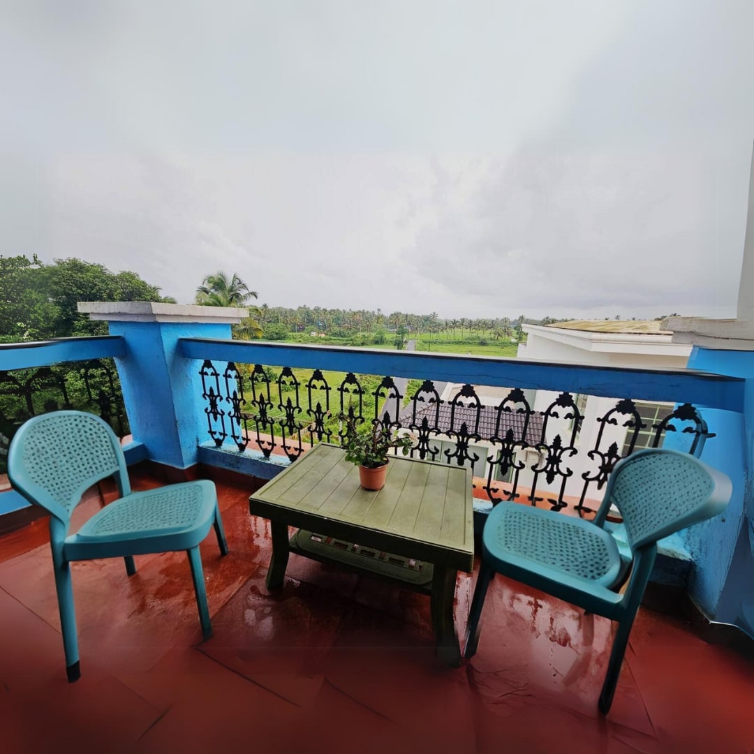 Wake up to the breathtaking panoramic views of lush green fields, swaying palm trees, and serene water bodies from the balcony of our charming 1BHK. The scenic landscape unfolds before your eyes, offering a tranquil retreat away from the hustle and bustle of city life. Perfect for nature lovers and those seeking a peaceful getaway, this idyllic setting promises relaxation and rejuvenation. Let the soothing sights and sounds of Goa's countryside be the backdrop to your memorable stay.