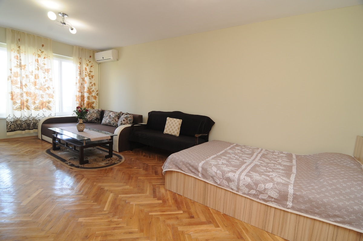 Apartmen selesa untuk 2 orang, terletak berhampiran dengan pusat bandar dan pantai Varna. Di bangunan yang sangat cantik di tingkat 1 dengan lif, Internet berkelajuan tinggi. DAFTAR MASUK SENDIRI/waktu fleksibel/ DAFTAR KELUAR SENDIRI/sehingga 13:00/ Internet: wifi berkelajuan tinggi atau Lan Tempat letak kereta: berbayar di tepi jalan berhampiran & percuma dalam masa 7 minit /berjalan kaki/