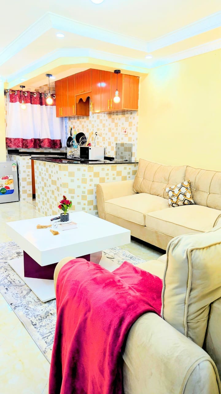 Bersantai di apartmen studio percutian yang unik dan tenang ini yang tersedia ,dilengkapi dengan kemudahan moden. Hanya 2.5Km dari jalan Thika Melalui Pintu Keluar 11 Ruiru dan hanya 25KM ke JKIA dan 1.5KM ke Hospital Universiti Kenyatta yang baru dibina, dan hanya 800 meter ke Bandar Tatu Tersedia untuk penginapan jangka panjang dan Pendek. Kemudahan: Tempat letak percuma Wifi tanpa had Kamera Keselamatan Tv (Samsung Qled Slim TV 55 inci) Sistem bunyi (JBL 9.1 Sound-bar) Extreme Bass Netflix , Pembuat Kopi YouTube