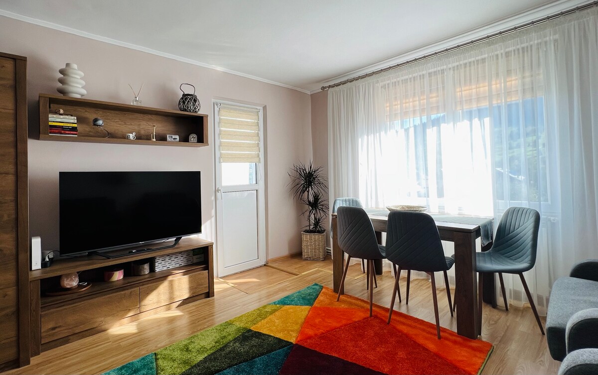 Selamat datang ke kediaman kami! Kami gembira dapat bertemu dengan anda. Apartmen desa, berpanel kayu, namun baru dan berperabot moden menanti anda. Rumah ini terletak di kawasan yang tenang dan damai, di mana anda boleh mendengar bunyi aliran air yang mengalir berdekatan. Hanya 15 minit berjalan kaki ke pusat bandar, 25 minit ke stasiun kereta dan kira-kira 5-7 minit berjalan kaki ke kedai Lidl. Selain itu, 10-15 minit memandu ke Rarau Ski Resort.