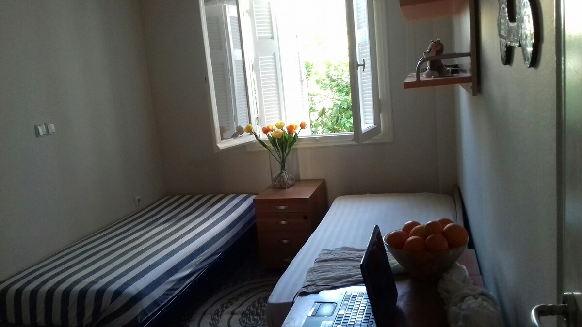 50sq.m. residence with yard recently renovated . It has a large living room with l40'' led TV, fireplace and comfortable sofas, a bedroom with a king size double bed 160cmX200cm and a comfortable mattress. The kitchen is fully equipped and the bathroom is quite spacious. In the shared courtyard you will find citrus trees, a barbeque area and bicycle storage. Μaximum accepted number is: 5 guests (2 persons on the double bed, 3 persons on the sofa beds in the living room).