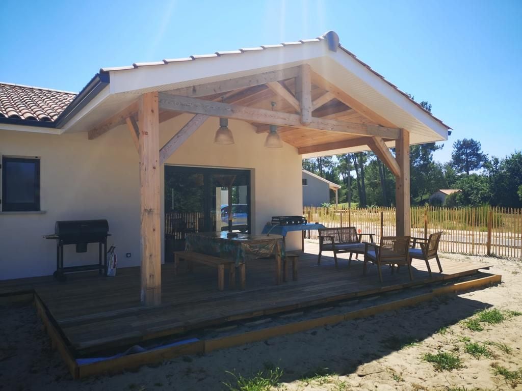 Rumah percutian di Montalivet. (Hos berbahasa Inggeris) Rumah baru untuk 6 orang yang terletak di kawasan yang tenang 1.2 km dari laut (kira-kira 12 minit berjalan kaki). Dilengkapi sepenuhnya dan berperabot, anda akan berasa selesa di sini! Terdiri daripada 3 bilik tidur termasuk suite utama, 2 bilik mandi secara keseluruhan, 2 tandas, teres tertutup dengan perabot barbeku/plancha/taman dan meja luar. Dapur yang serba lengkap (ketuhar mesin basuh pinggan mangkuk-induction-micro-wave washing machine - coffee machine - toaster etc.)