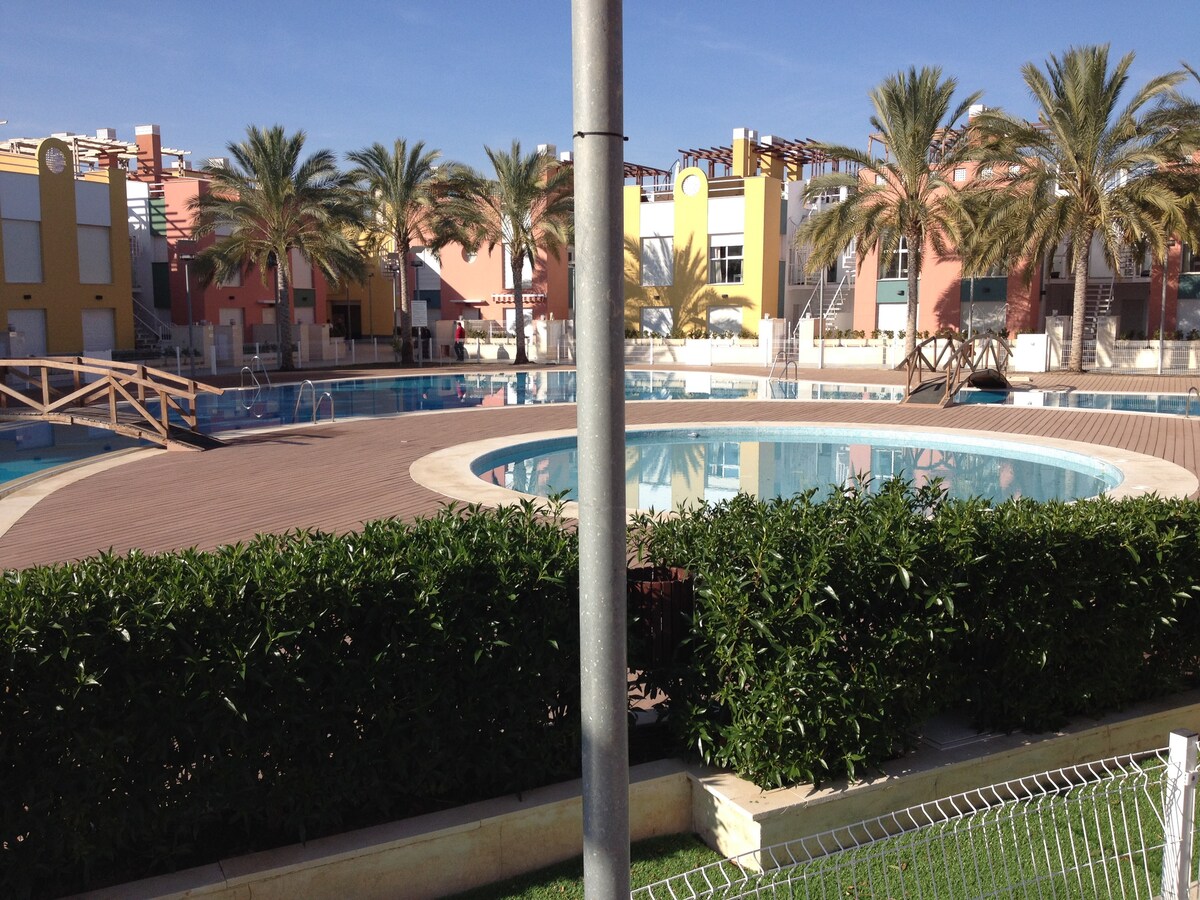 APARTMEN DENGAN PEMANDANGAN yang sangat cerah, dengan pemandangan yang indah dan santai. Ia lengkap sepenuhnya, dengan hiasan yang baik. Teres dengan awning. Apartmen ini berada di kediaman yang tenang dan terjaga rapi, sesuai untuk berehat. Pantai berjarak 10 minit berjalan kaki dari pantai. Garrucha sangat dekat Ia sesuai untuk pencinta golf; alam semula jadi dalam keadaan tulen kerana berdekatan dengan "Taman Semula Jadi Cabo de Gata" kami yang indah. Juga sesuai untuk penginapan jangka panjang dan Teletrabajar.m