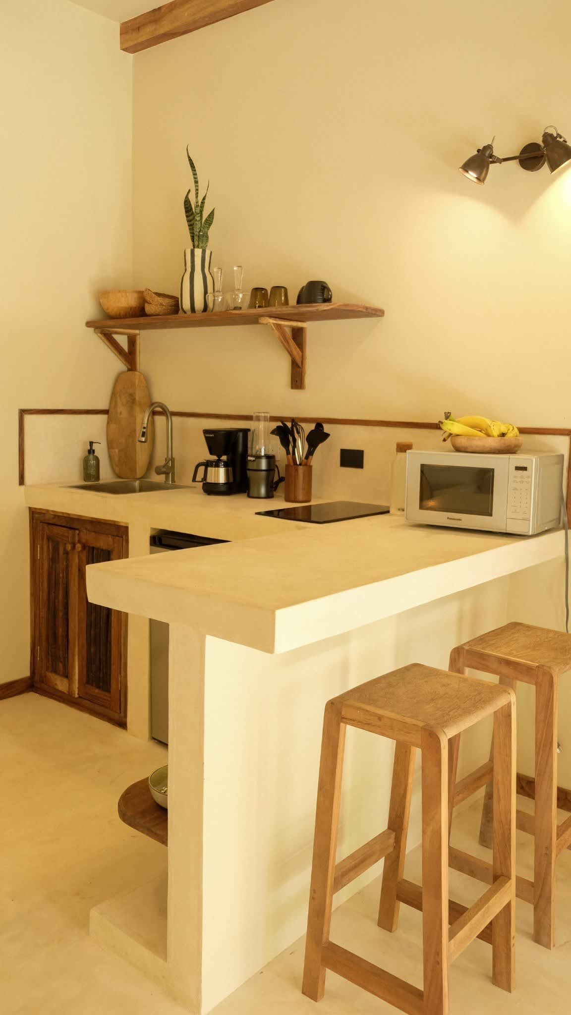 Rio Alegre is the largest and most comfortably equipped of our three cabañas. It features a spacious terrace with cozy seating, a small kitchenette with a high quality induction cooktop using German technology, and a queen size bed with a comfortable orthopedic style mattress. Centrally located in Torio, just minutes from the plaza and local restaurants, it is an ideal base to experience authentic village life, surrounded by river, ocean, and lush green hills.