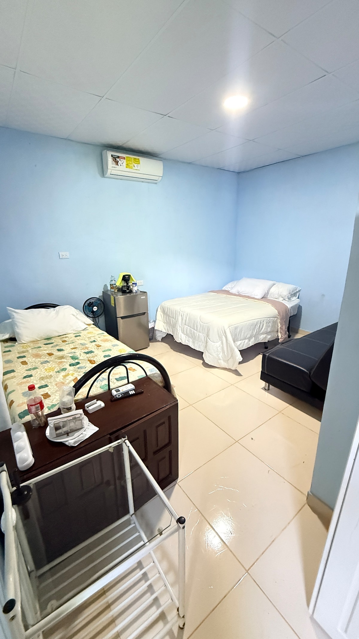 cuarto privado con baño y aire acondicionado.