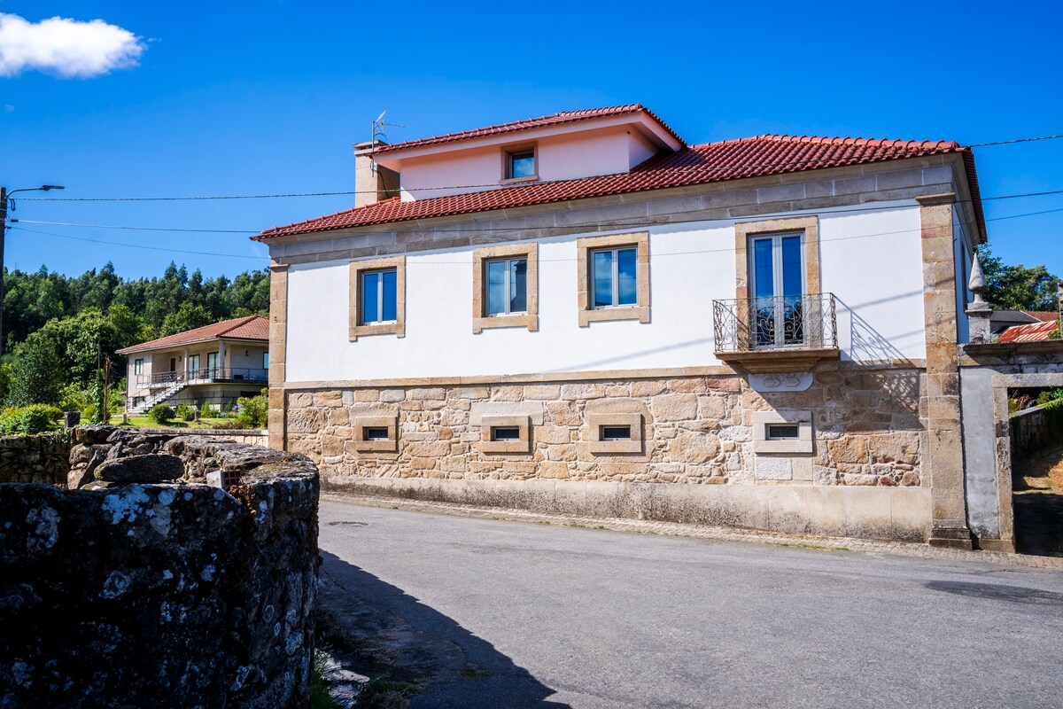 Rumah batu dengan estet dalam persekitaran semula jadi 8 minit berjalan kaki dari pusat Tui atau 3 minit dengan kereta. Pemandangan indah ke Katedral Tui, ke Casco Bersejarah dan ke Valença do Minho. Penginapan ini menawarkan tempat untuk berehat dengan beranda tertutup, taman, barbeku, ketuhar kayu, kolam renang (15/06 hingga 15/09) dan kolam. Ia mempunyai 4 ruang letak kereta tertutup di lokasi. Ruang tempat duduk dengan peti sejuk, ketuhar gelombang mikro, TV dan pembuat kopi. Mesra Haiwan Peliharaan. Ia mempunyai blok untuk kuda.