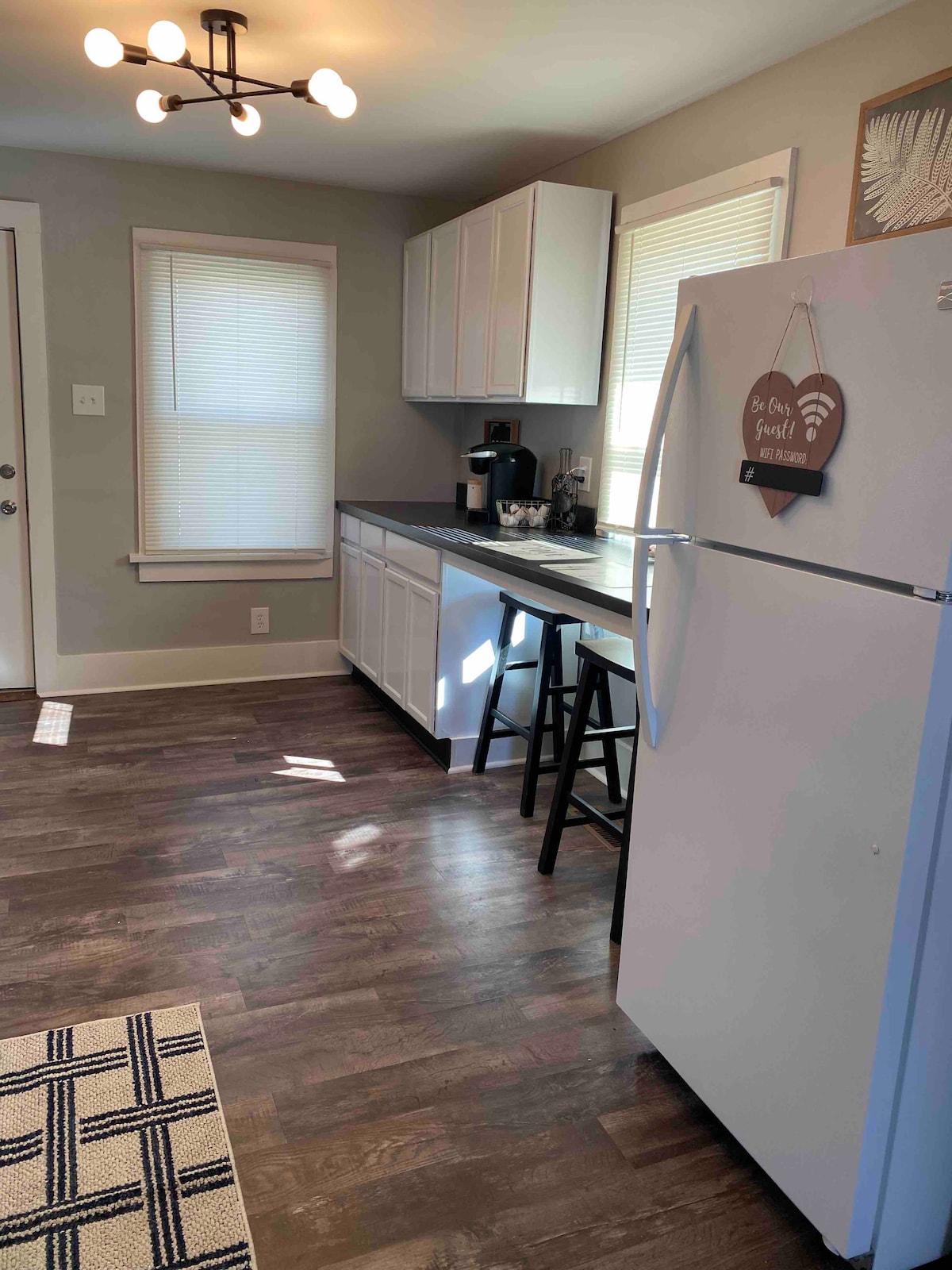 Berseronok dengan seluruh keluarga di tempat yang bergaya ini. Baru dikemas kini dengan kemudahan. Dobi di lokasi, pancuran jubin berjalan kaki, ketuhar gelombang mikro, periuk kopi, internet, dan banyak lagi! Mempunyai beranda depan yang comel di mana anda boleh duduk dan menikmati kopi pagi anda! Terletak di tengah-tengah kawasan yang tenang. Maaf- tiada haiwan peliharaan atau merokok di dalam. Termasuk satu katil ratu dan sofa lipat Akan menawarkan kadar bulanan berdiskaun