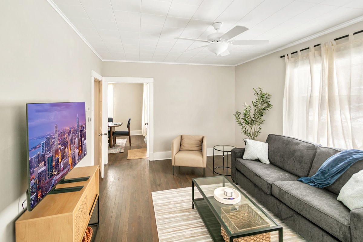 Charming home in Highland Park. The space is my in-law suite which is in the lower level of my home and has its own full size kitchen and bathroom. I live up-stairs with my 3 small dogs so I will be available if you need anything during your stay. The in-law suite is set up like a studio and has ONE queen bed, a separate closet area and laundry. Please note- the suite is in the basement (stairs), but there is natural light. You have use of the deck/yard if desired. No stays over 3 weeks.