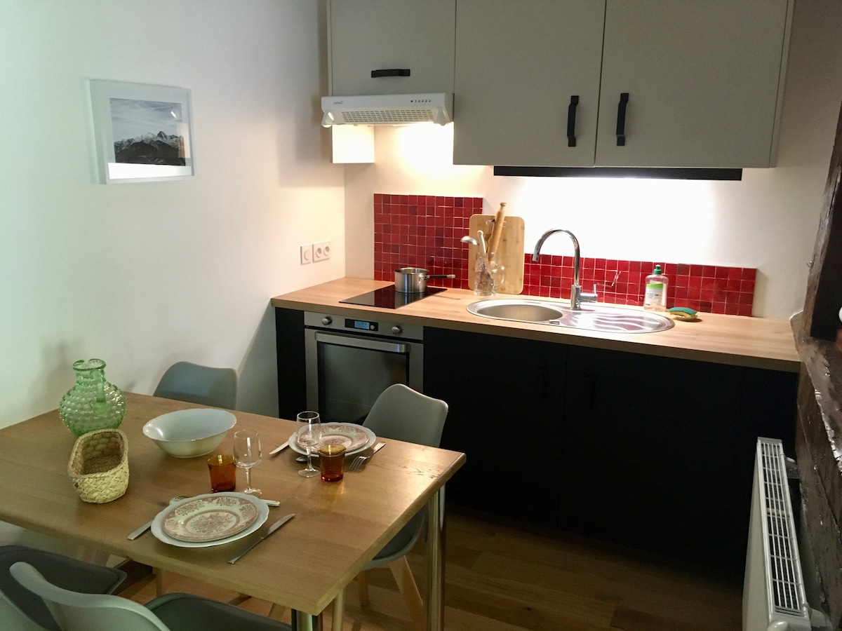 Apartmen layan diri ini terletak di rumah ladang abad ke-19 yang lama. Dengan keluasan kira-kira 40 m2, ia telah diubahsuai pada tahun 2020. Mempunyai persekitaran yang tenang dan hijau, 2km dari Tasik Annecy, ia mempunyai balkoni kayu besar yang terletak di sepanjang laluan berjalan kaki.