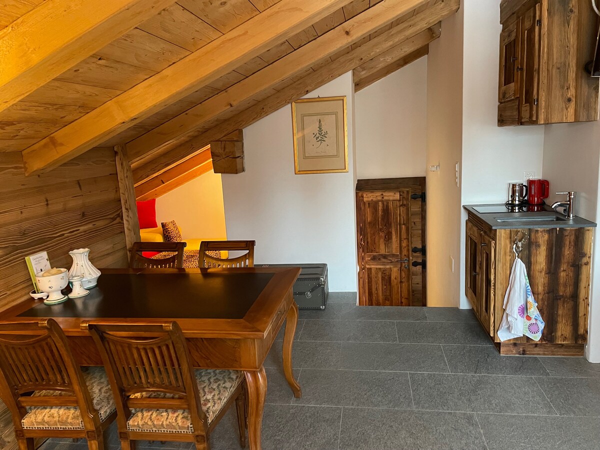 Mencari kedamaian dan ketenangan? Kami menyewa chalet kami yang baru diubahsuai di Surin, pengawal luar Lumbrein di lembah cahaya yang indah. Di tingkat bawah anda akan menemui dapur yang serba lengkap, ruang makan untuk 4 orang dan katil sofa yang selesa. Tingkat satu menawarkan satu lagi kemudahan tidur untuk 2 orang, pancuran mandi/WC dan 2 balkoni dengan pemandangan yang indah. Resort ski Vella boleh dicapai dalam masa 15 minit dengan kereta. Tiada bas pos ke Surin!