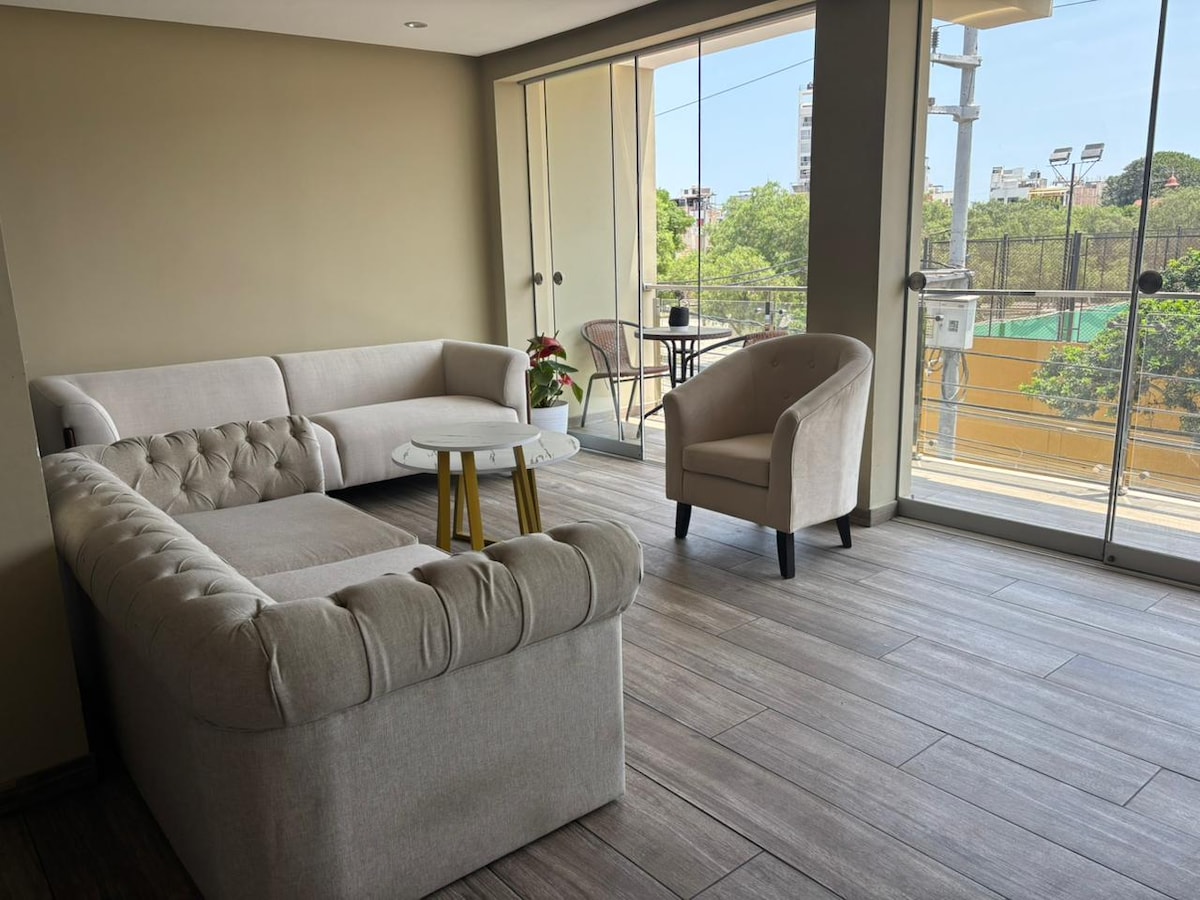 Selamat datang ke kediaman sementara anda di Trujillo. Apartmen tingkat satu ini mempunyai semua yang anda perlukan untuk penginapan yang selesa, selamat dan berfungsi. Sesuai untuk keluarga, pasangan, pengembara perniagaan atau pengembara digital. Ruang 2 bilik tidur dengan katil double, ruang tamu yang luas dan terang, 1 bilik mandi penuh, kawasan kerja dengan meja Dapur lengkap, kami mempunyai pelbagai peralatan, WiFi berkelajuan tinggi, garaj persendirian disertakan, untuk keselamatan dan keselesaan yang lebih baik.