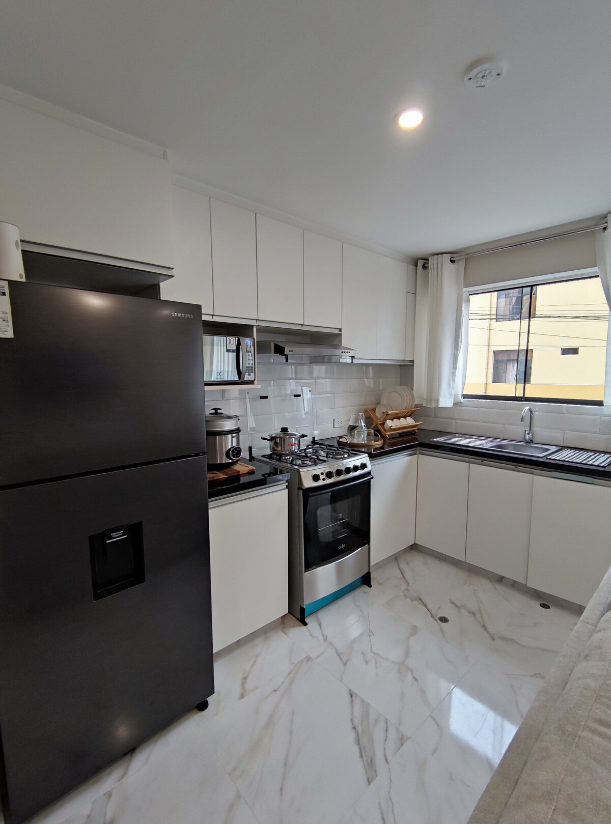 ✨ Apartmen 93 m² yang selesa di San Andrés, Trujillo ✨ Di tingkat 3, di kawasan yang selamat🛡️, hanya 3 blok dari Plaza de Armas. 🛏️ 6 tetamu | 🏡 3 bilik tidur | 🚿 2 bilik mandi 🛋️ Ruang tamu dan makan dengan TV Pintar + Netflix📺, 🌐 Internet pantas, 🍳 Dapur lengkap, 🧺 Pencucian kering dan air panas. Berdekatan dengan kafe, restoran, pasar raya dan pengangkutan awam🚖🚌. Sesuai untuk penginapan anda di Trujillo!