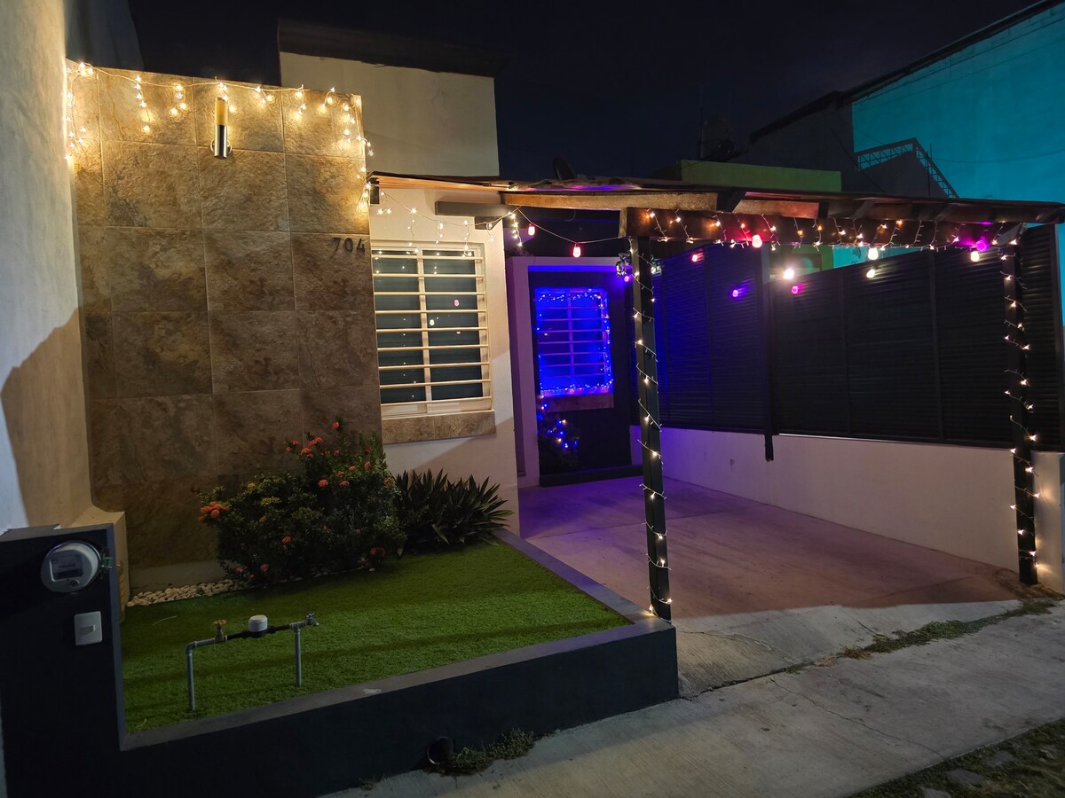 Selamat datang ke rumah anda di Ciudad Natura! Nikmati rumah yang sangat baik di subbahagian Ciudad Natura, di Villa de Álvarez. Disebabkan lokasinya yang strategik dan akses mudah ke Lingkaran Pinggir ke-3, ia adalah pilihan ideal untuk perjalanan perniagaan atau percutian. Kemudahan: • Dua bilik tidur yang selesa (3 katil 1 katil sofa) • Ruang tamu dan ruang makan yang luas • Dapur yang lengkap • Bilik mandi penuh. • Dobi percuma Nikmati ketenangan dan keselesaan tanpa mengorbankan jarak ke tempat kerja atau tempat pelancongan anda.