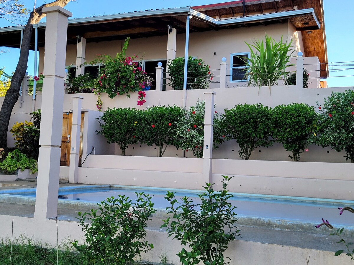 Casita moden bergaya baharu dengan kolam renang yang terletak di komuniti berpagar Brisas de Alma terus di pantai di Boom yang terkenal di dunia. Mempunyai penyaman udara, kipas siling, bilik mandi penuh dengan pancuran mandi, peti sejuk kecil, dapur memasak elektrik, ketuhar gelombang mikro, wifi berkelajuan tinggi (jarang berlaku di Nica), dan solar dengan sandaran bateri. Terletak kurang daripada 100 ela dari pasir terus di Boom. Hos tempatan dwibahasa kami tersedia untuk apa sahaja yang anda perlukan termasuk pengangkutan, sewaan, sewa bot, maklumat meluncur, gambar, lawatan gunung berapi, dll.