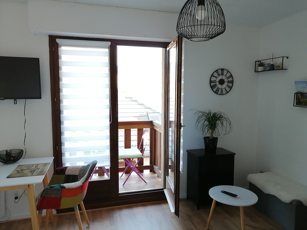 Studio sisi 2000, 20m2 terletak di tingkat 3 bangunan kecil 150 m dari permulaan cerun dan pusat membeli-belah. Lokasi hebat untuk hiking! 3 orang ( 1 katil kelamin dan 1 katil sofa bujang) Sewaan mingguan semasa cuti sekolah, dan 2 malam min di luar cuti sekolah. Tempat letak kereta percuma di kaki bangunan. Pentas