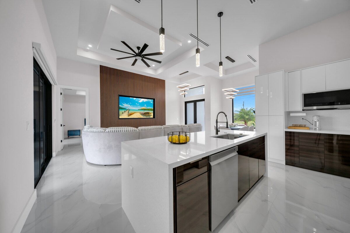 DISKAUN: Minggu...1=10%, 2=15%, 3=20%, 4=25%. Selamat Datang "Oasis"! Bercuti ke air dan menginap di terusan di Cape Coral yang indah! Nikmati rumah 3 bilik tidur, 2 bilik mandi ini. Berenang di kolam renang, duduk di patio, memancing dari dok, duduk di bar tiki untuk minum, atau tidur siang di lanai untuk melepaskan diri daripada semuanya! Terdapat dok sepanjang 50 kaki dengan 30 dan 50 amp, jadi bawa bot anda! Teluk ini boleh diakses dengan bot dan aktiviti Ft Myers Beach & Sanibel/Captive Island dan pantai berhampiran!!