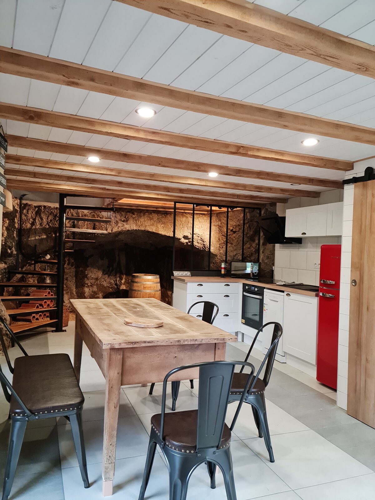 Terokai pengubahsuaian unik 100 m dari Allier, di rumah ladang lama yang diubah suai ini, menggabungkan kayu, logam dan batu Pusat rumah? Dapur terbuka ke arah batu semula jadi yang menawarkan suasana mineral yang hangat Selepas berjalan-jalan di tepi air, nikmati Jacuzzi persendirian dengan pemandangan semula jadi dan sungai serta Château de St Ilpize Pada waktu malam, asrama 4 katil yang selesa untuk menemui semula jiwa zaman kanak-kanak anda Tenang dan terputus hubungan terjamin!