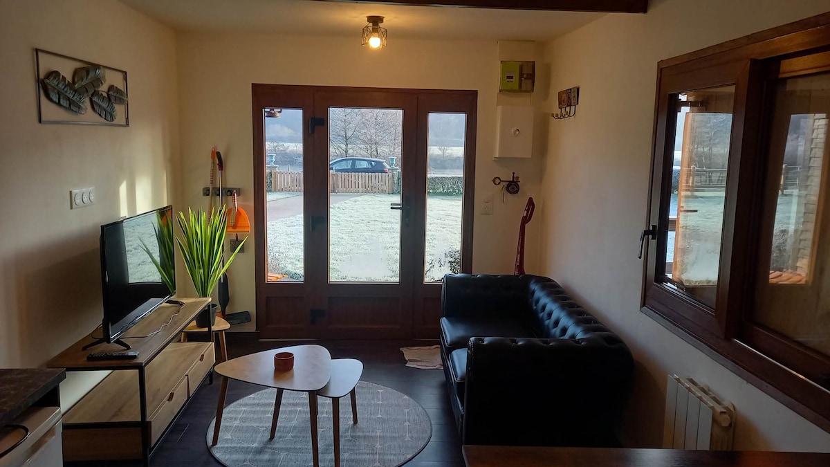 Kotej yang menyenangkan, mewah, hangat, selesa, dikelilingi oleh alam semula jadi dengan pemandangan Ardennes yang indah, taman persendirian yang besar dengan buaian, tempat letak kereta persendirian di hadapan rumah. Wifi berkelajuan tinggi baharu. Rumah terakhir di puncak kampung kecil yang cantik, di jalan buntu, 150 m dari hutan. Sesuai untuk berjalan-jalan. Untuk 2 orang dewasa dan kemungkinan 1 kanak-kanak dan 1 bayi. 1 jam 15 minit dari Brussels, Liège, Lux. 4km dari lembah Meuse. Tenis!! dalam pembinaan. Kolam spa 15' Golf 12'..