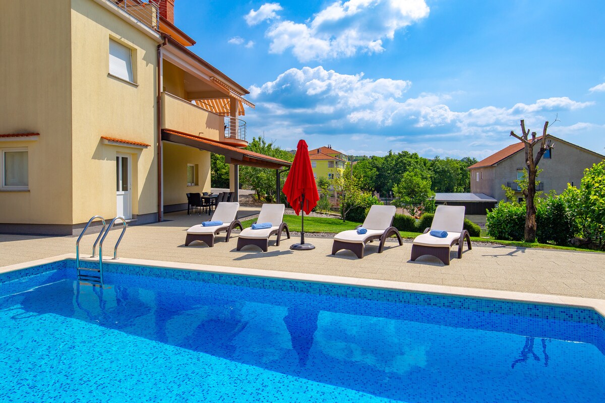 Selamat datang ke vila mewah kami, yang terletak dalam suasana yang damai dengan pemandangan Kvarner yang indah. Vila kami menawarkan keselesaan moden dan pesona tradisional dengan kolam renang persendirian, taman besar dan teres dengan barbeku. Dapur yang serba lengkap, WiFi percuma, TV besar dan pelbagai aktiviti berhampiran menjadikan penginapan anda tidak dapat dilupakan. Nikmati keselesaan dan layanan yang kami tawarkan. Tempah sekarang dan alami percutian istimewa di vila kami!🌴☀️