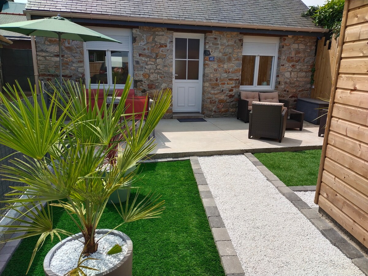 🔍🔎 KETERANGAN tipikal dengan rasuk terdedah, teres, kabin dan taman sintetik luaran kecil, Anda akan menginap di rumah batu kecil yang dipulihkan sepenuhnya ini seluas 20 m2 di atas lantai+14 m2 di tingkat atas , sangat cerah dan dihiasi dengan berhati-hati. 📍Val d ize 35450 ( di luar bandar) 10 minit dari Vitré dan 20 minit dari Fougères ( 2 bandar zaman pertengahan), 30 min dari Rennes 1 jam dari St Malo dan Mont St Michel. Boulangerie, Bar tabac PMU dan Carrefour Express kurang daripada 800 m.