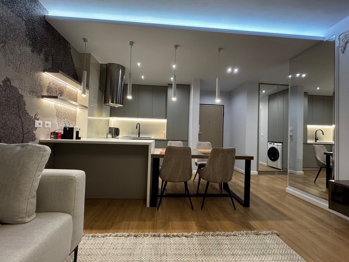 Apartmen baharu ini menawarkan keselesaan moden dengan perabot mewah, dua bilik mandi bergaya, dan tab mandi yang menenangkan. Apartmen 🏡 seluas 100+ m² yang luas • Perabot minimalis🛋️ moden (reka bentuk 2025) • 📍 Terletak di tengah-tengah pusat bandar • 🌊 Hanya 5 minit dari pantai • ⛵ Hanya 5 minit dari pelabuhan bot utama Vlora • 🛁 2 bilik mandi — satu dengan tab mandi untuk keselesaan tambahan