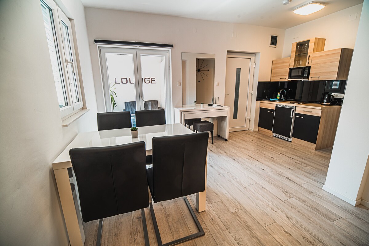 Apartmen selesa berhampiran pusat bandar (5 minit berjalan kaki) dan pantai bandar (10 minit berjalan kaki). Stesen Bas utama berjarak 5 minit berjalan kaki dari apartmen. Ia mempunyai balkoni yang bersambung dengan apartmen. Tempat letak kereta di hadapan rumah adalah percuma. Penggunaan penyaman udara adalah percuma. Di samping apartmen Lea kami ada apartmen Lu yang terletak bersebelahan. Sekiranya satu apartmen diduduki, anda boleh menempah satu lagi.